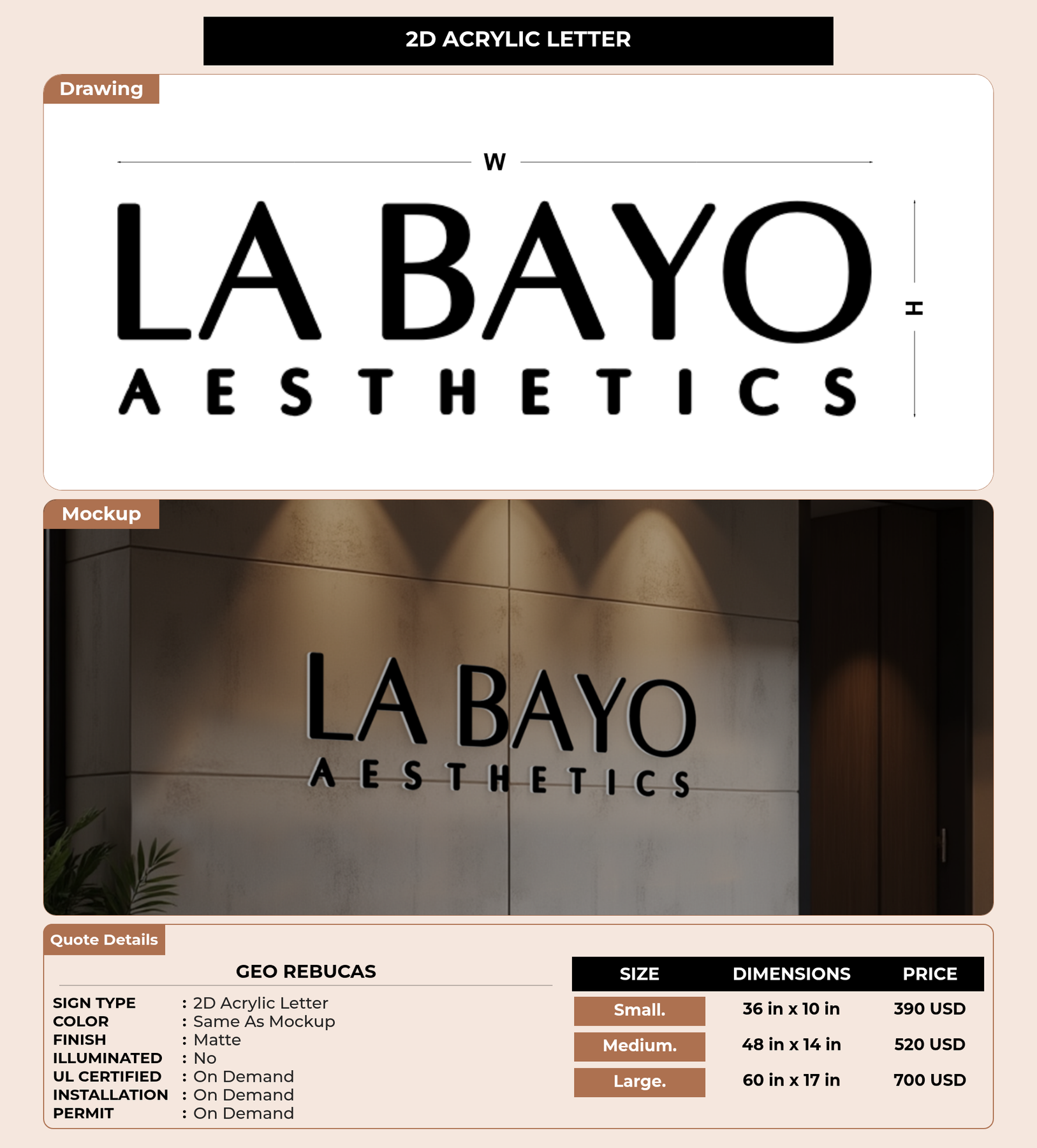 Enhance your business presence with our expertly crafted signage, made from top-quality material, to ensure longevity and durability. Fully customizable to reflect your unique brand identity, our signage offers a professional and polished appearance. Easy to install and low maintenance, it’s the perfect addition to any business setting. Trust us to deliver a product that not only meets but exceeds your expectations.