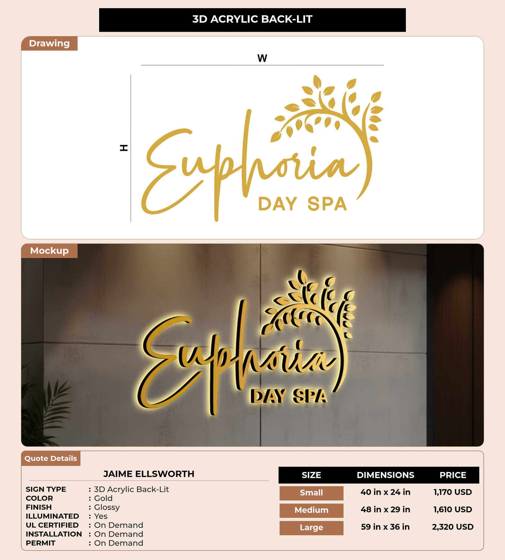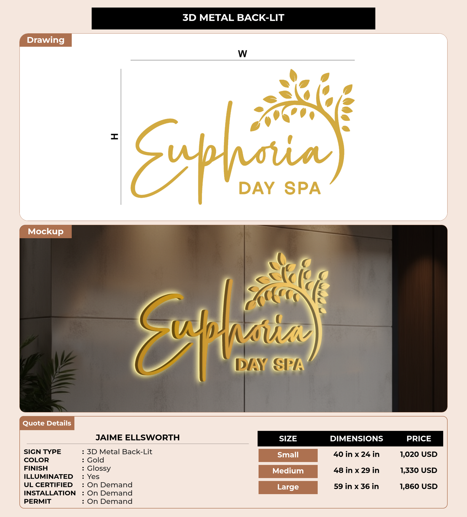 Eye-catching custom 3D sign for Jaime Ellsworth