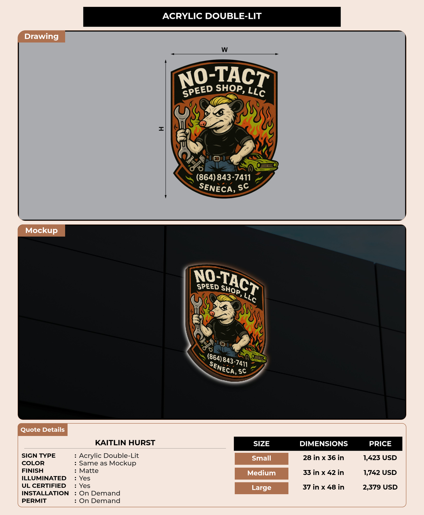 Enhance your business presence with our expertly crafted signage, made from top-quality material, to ensure longevity and durability. Fully customizable to reflect your unique brand identity, our signage offers a professional and polished appearance. Easy to install and low maintenance, it’s the perfect addition to any business setting. Trust us to deliver a product that not only meets but exceeds your expectations.