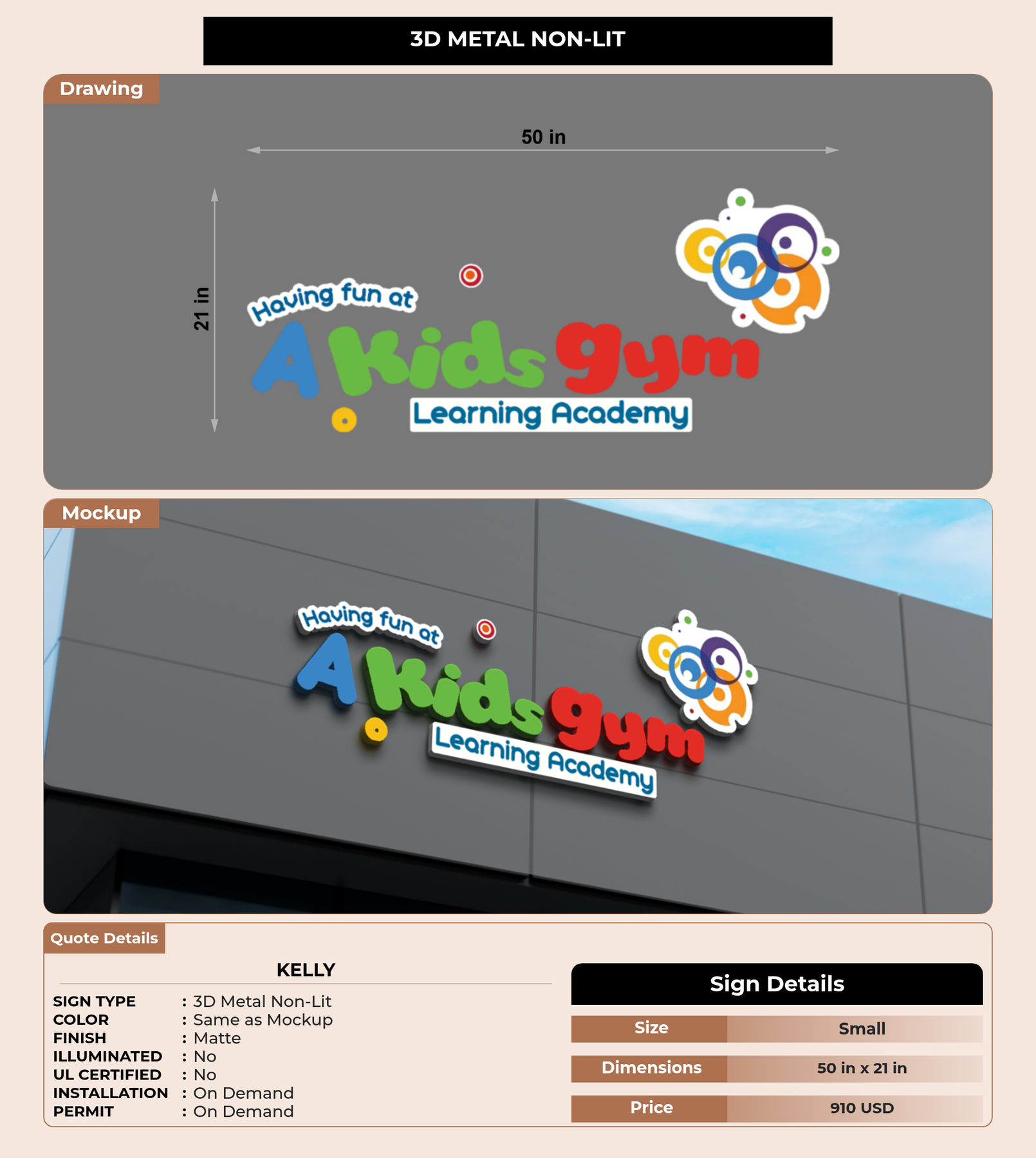 Eye-catching custom 3D sign for Kelly