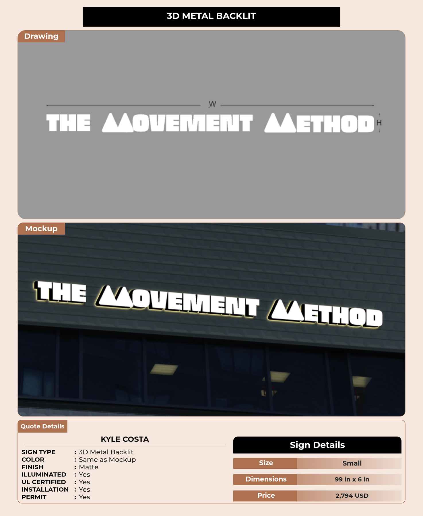 Eye-catching custom 3D sign for Kyle Costa