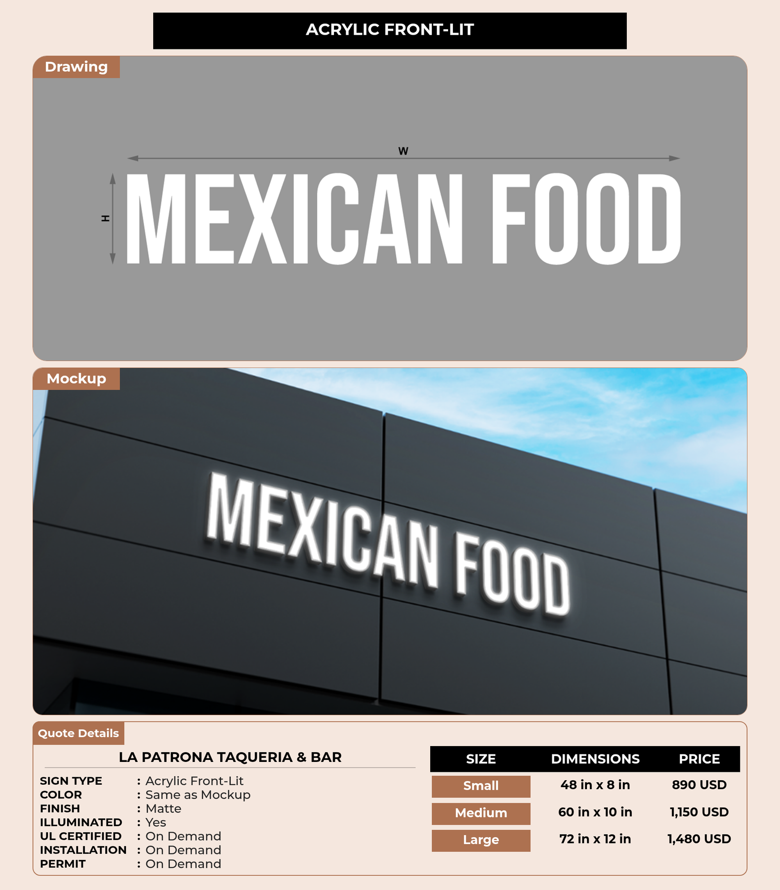 CUSTOM MOCKUP SIGN FOR La Patrona Taqueria & Bar