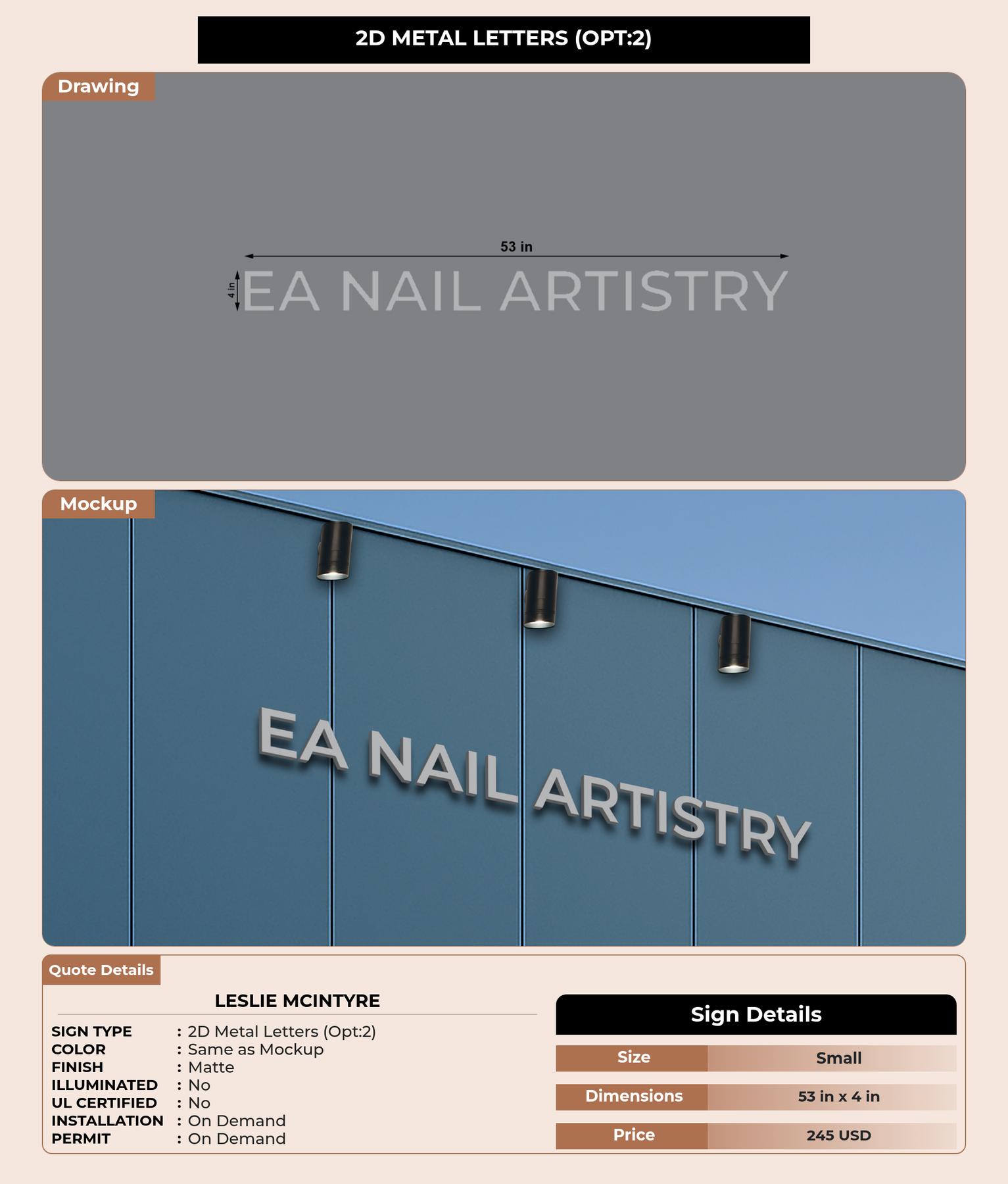 Installation services are available for an additional fee, depending on your location and the complexity of the signage.