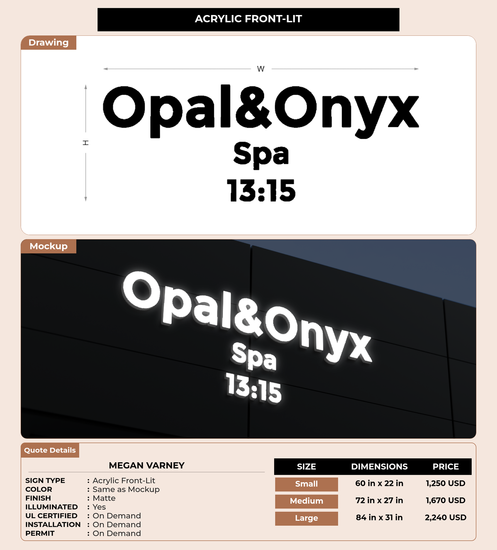 Enhance your business presence with our expertly crafted signage, made from top-quality material, to ensure longevity and durability. Fully customizable to reflect your unique brand identity, our signage offers a professional and polished appearance. Easy to install and low maintenance, it’s the perfect addition to any business setting. Trust us to deliver a product that not only meets but exceeds your expectations.