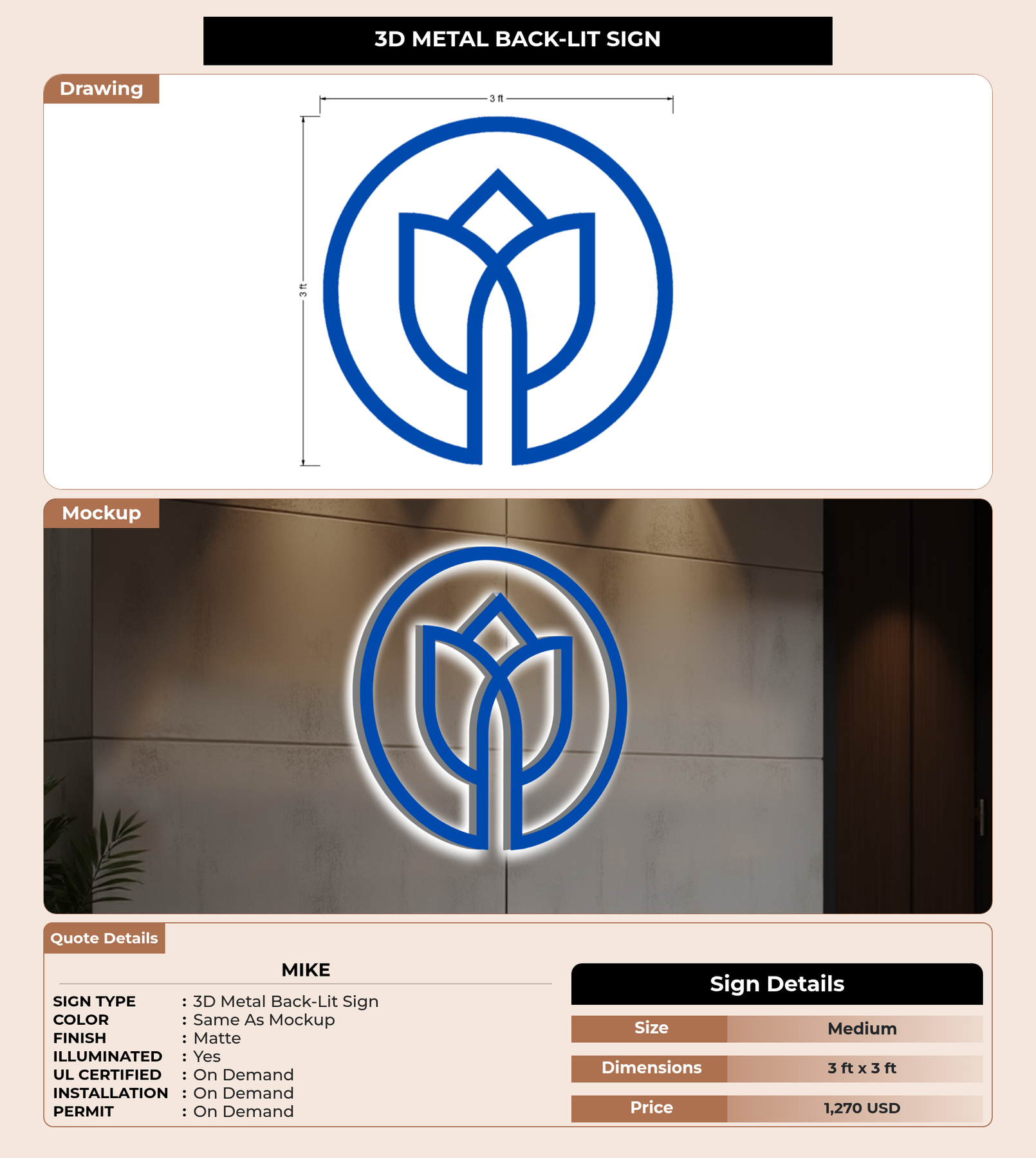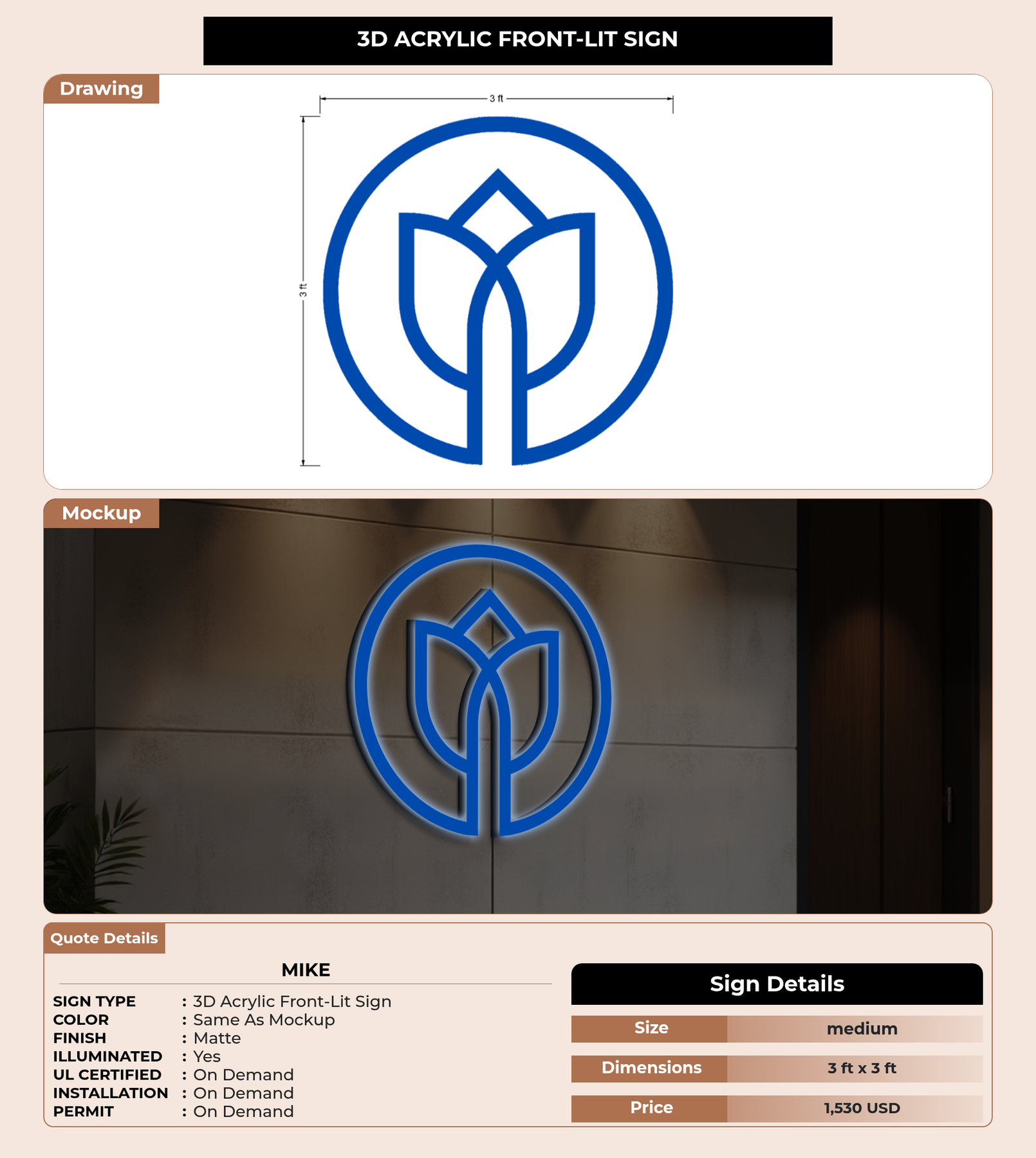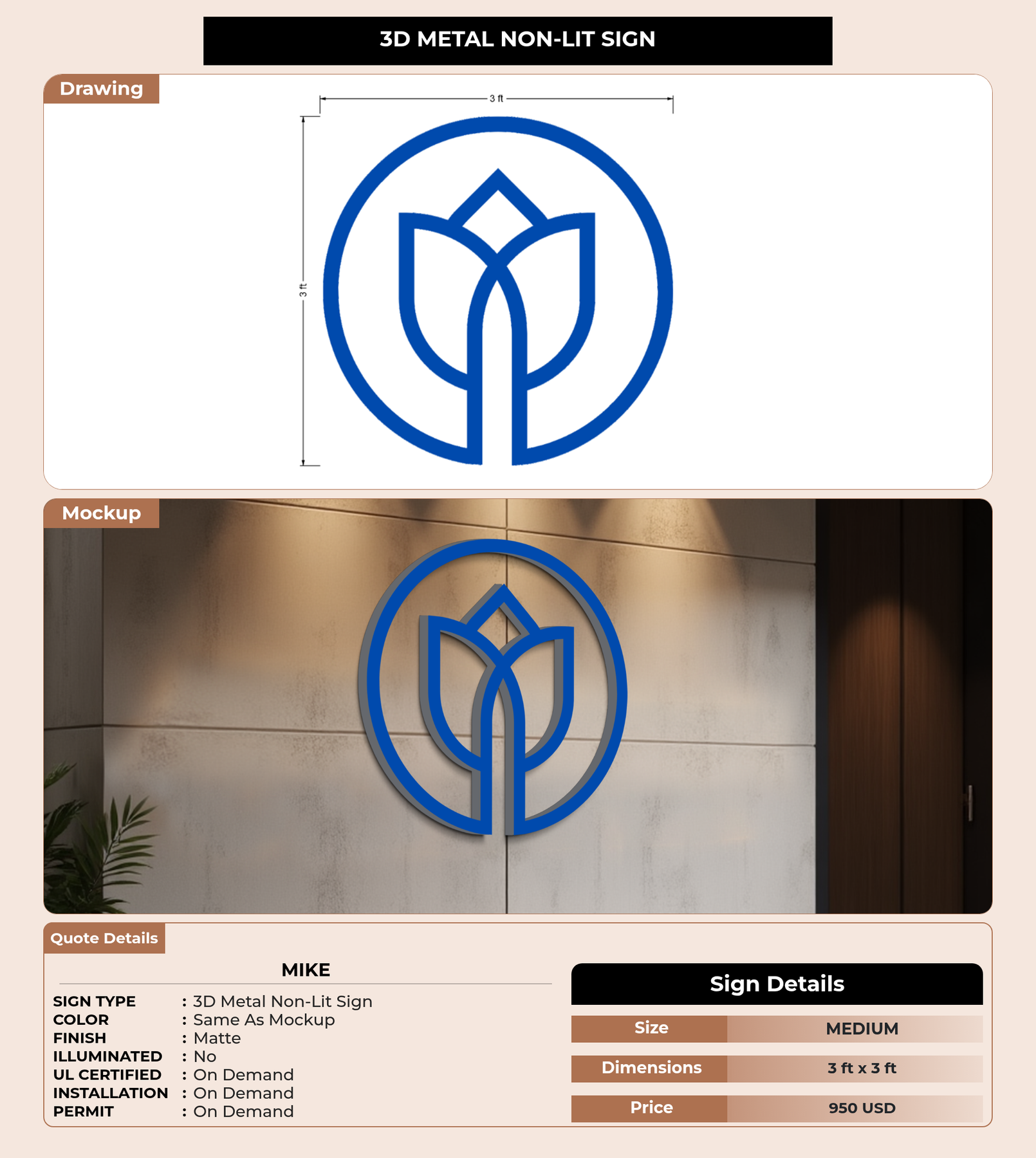 Crafted with premium material, this signage will elevate your business image, precisely mirroring your logo for a professional look.