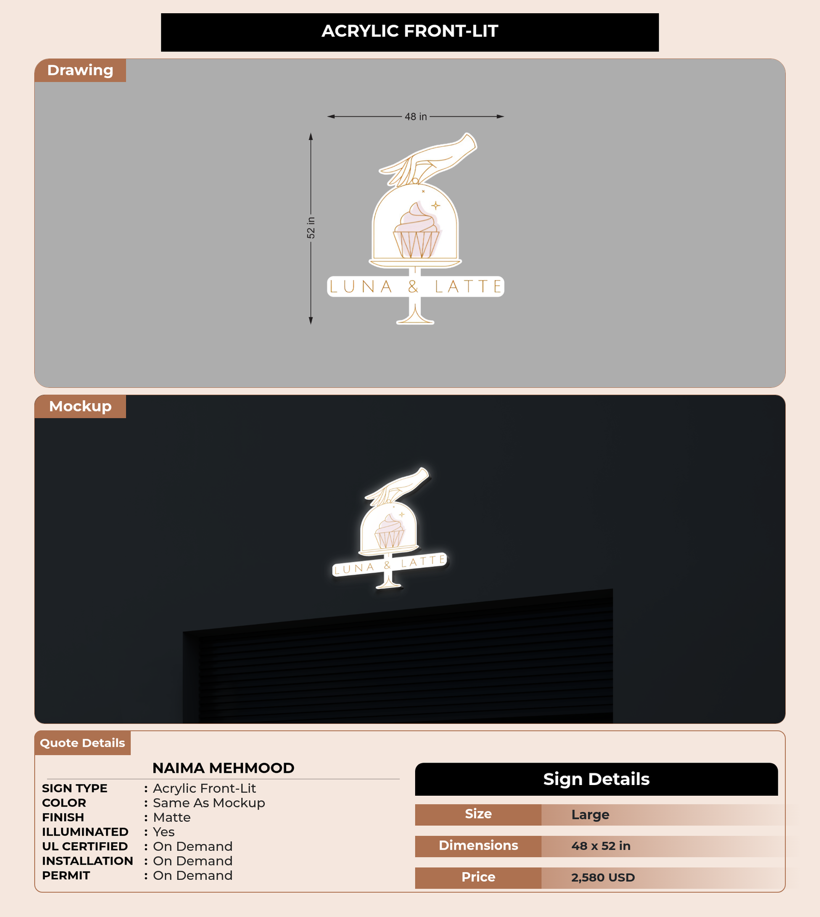 Crafted with premium material, this signage will elevate your business image, precisely mirroring your logo for a professional look.