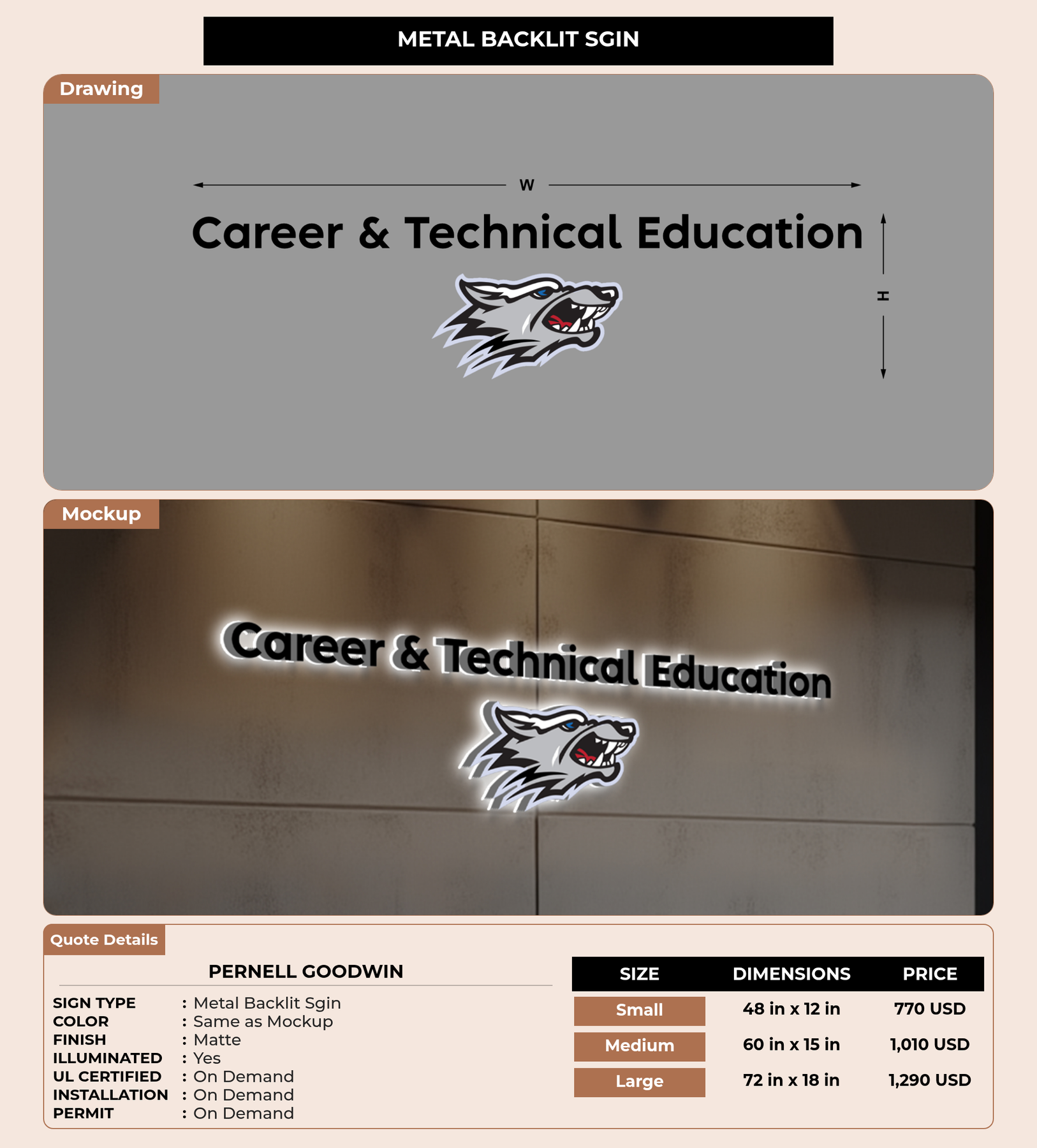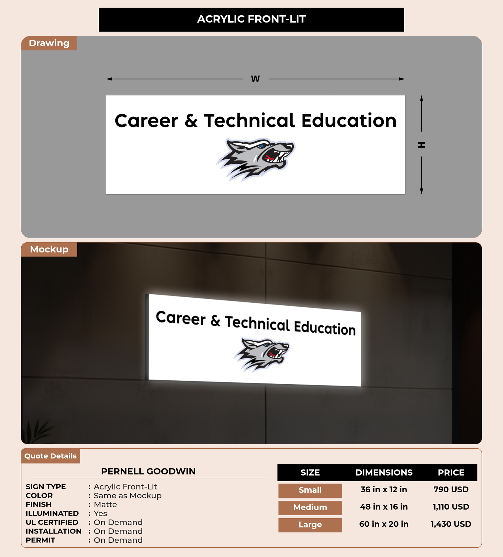Enhance your business presence with our expertly crafted signage, made from top-quality material, to ensure longevity and durability. Fully customizable to reflect your unique brand identity, our signage offers a professional and polished appearance. Easy to install and low maintenance, it’s the perfect addition to any business setting. Trust us to deliver a product that not only meets but exceeds your expectations.