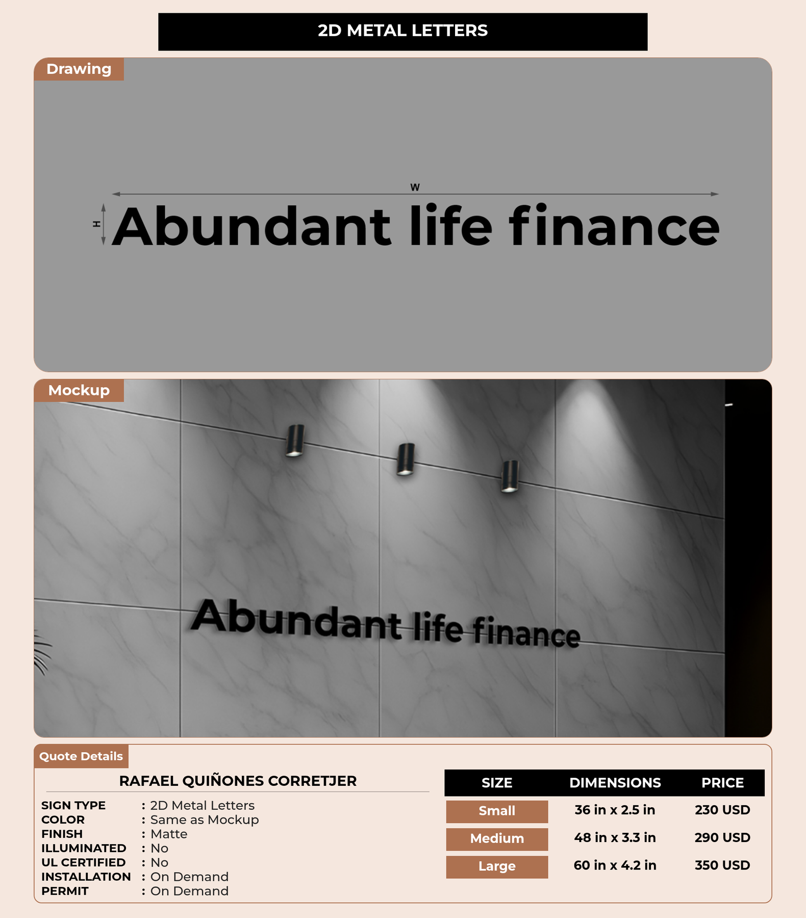 Crafted with premium material, this signage will elevate your business image, precisely mirroring your logo for a professional look.