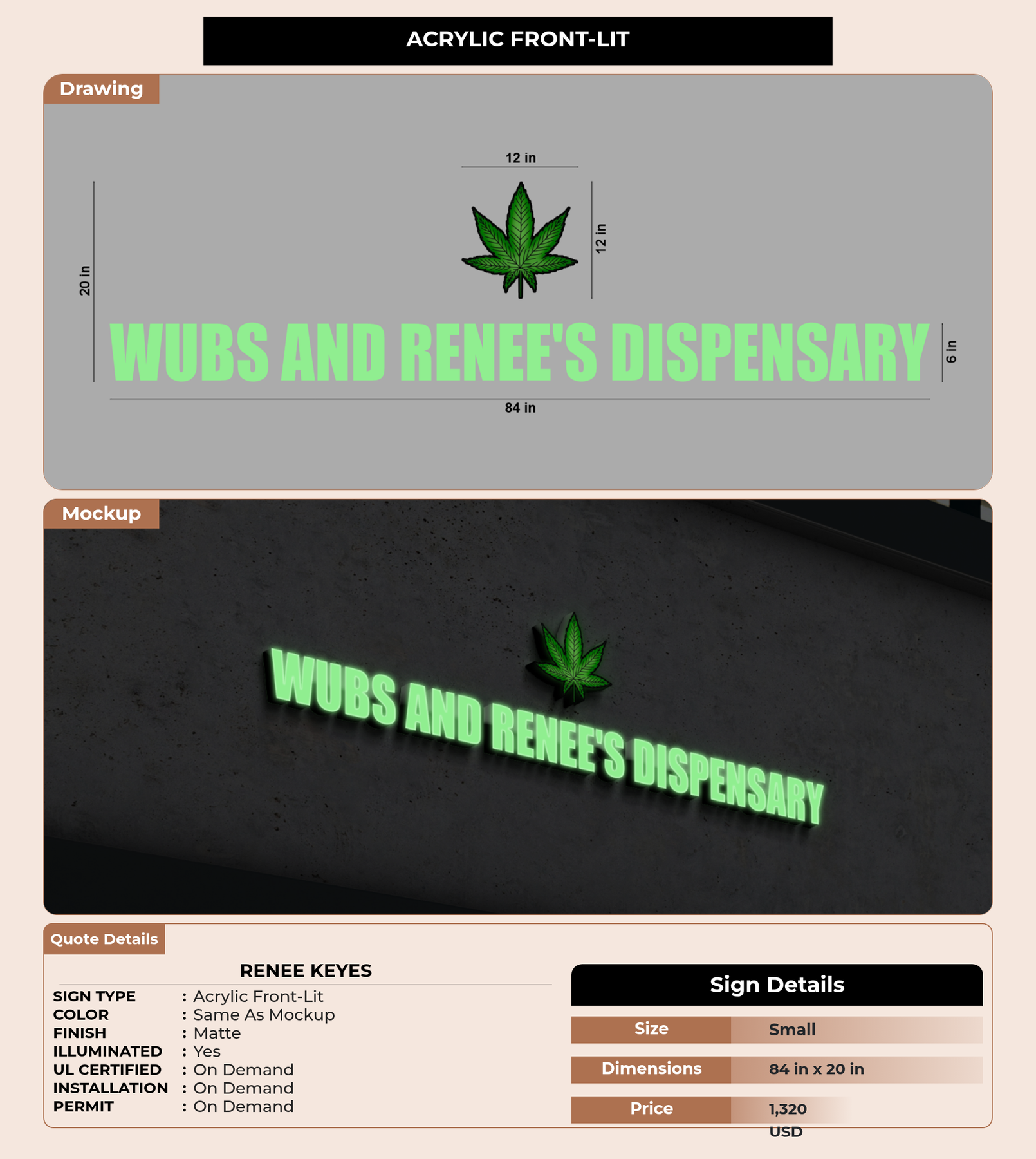 Enhance your business presence with our expertly crafted signage, made from top-quality material, to ensure longevity and durability. Fully customizable to reflect your unique brand identity, our signage offers a professional and polished appearance. Easy to install and low maintenance, it’s the perfect addition to any business setting. Trust us to deliver a product that not only meets but exceeds your expectations.