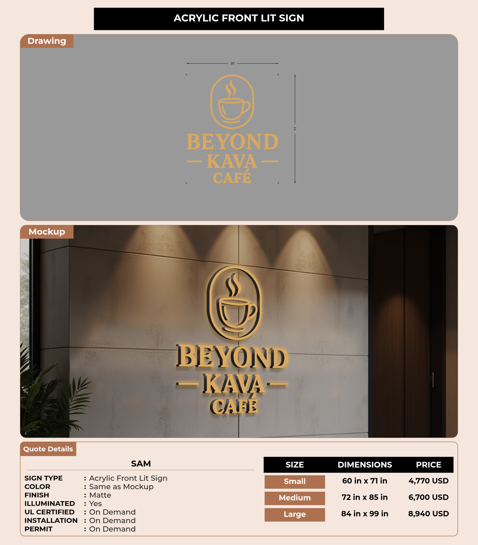 Crafted with premium material, this signage will elevate your business image, precisely mirroring your logo for a professional look.