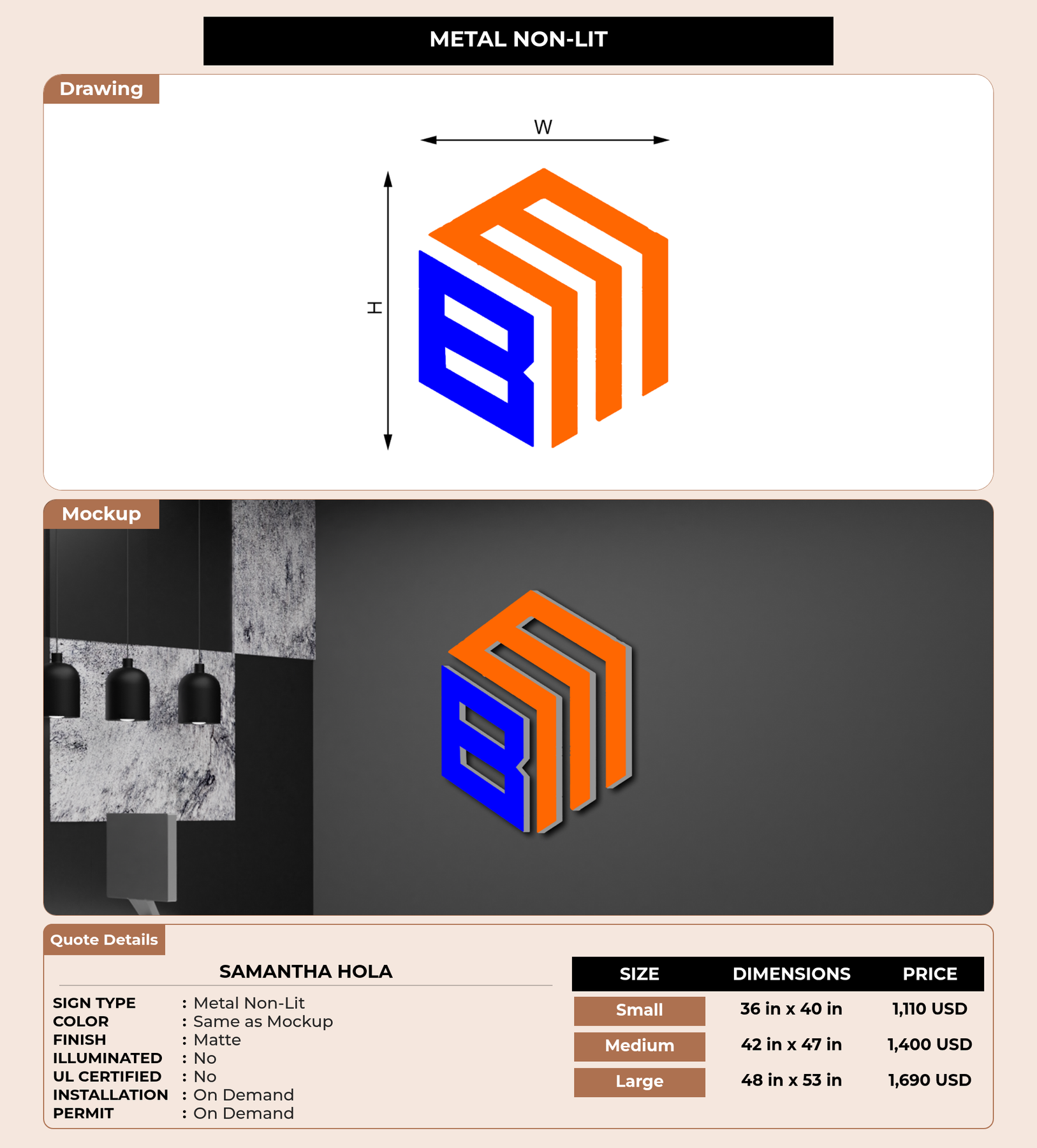 Crafted with premium material, this signage will elevate your business image, precisely mirroring your logo for a professional look.
