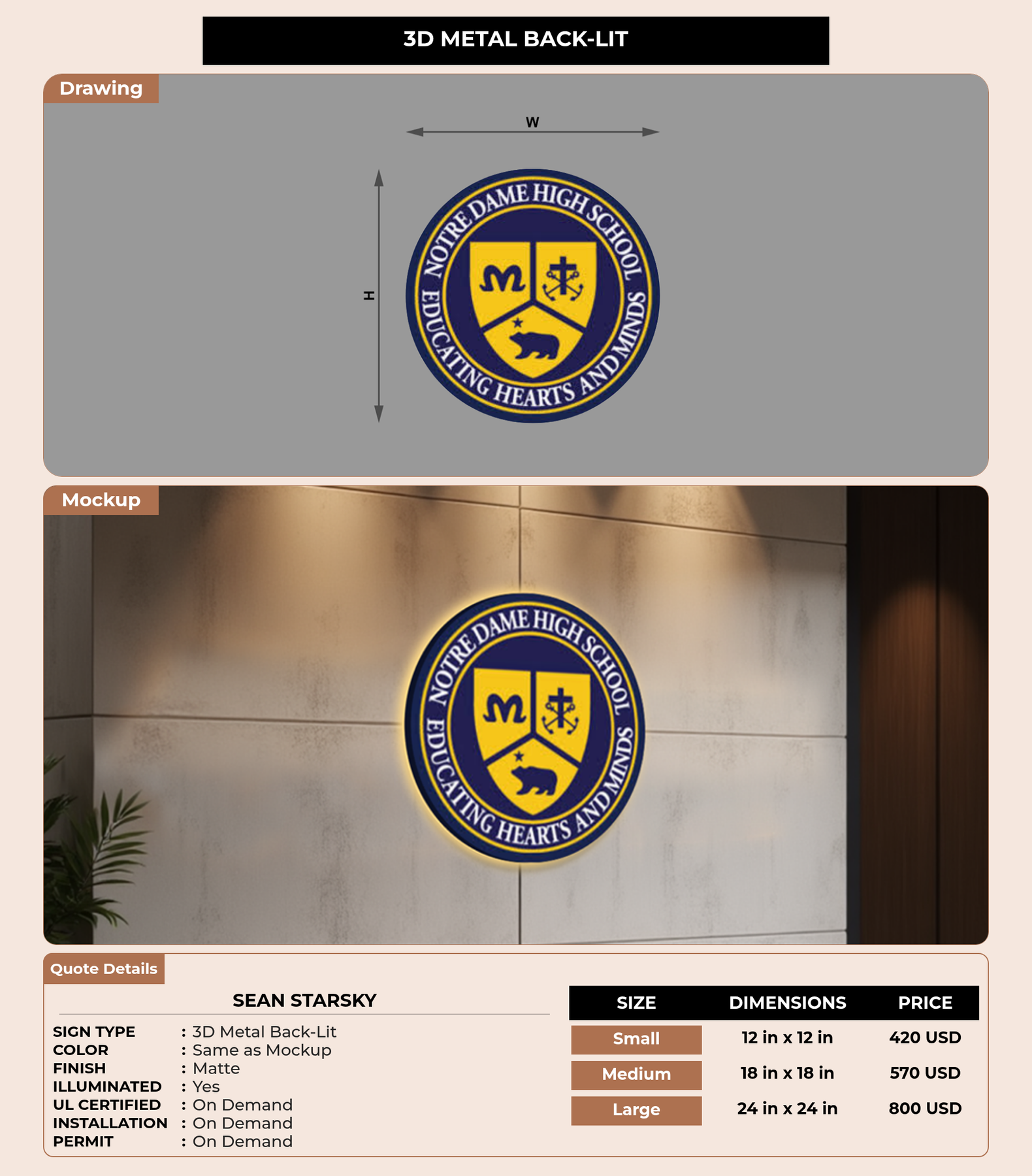 Crafted with premium material, this signage will elevate your business image, precisely mirroring your logo for a professional look.