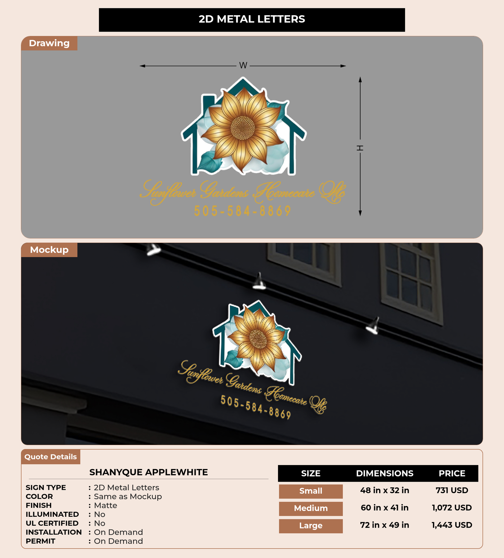 Crafted with premium material, this signage will elevate your business image, precisely mirroring your logo for a professional look.