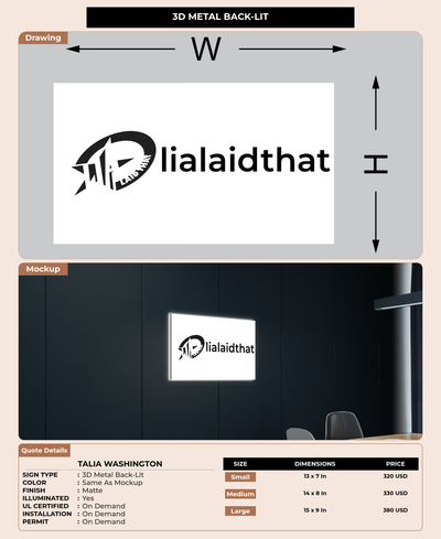 Eye-catching custom 3D sign for Talia Washington
