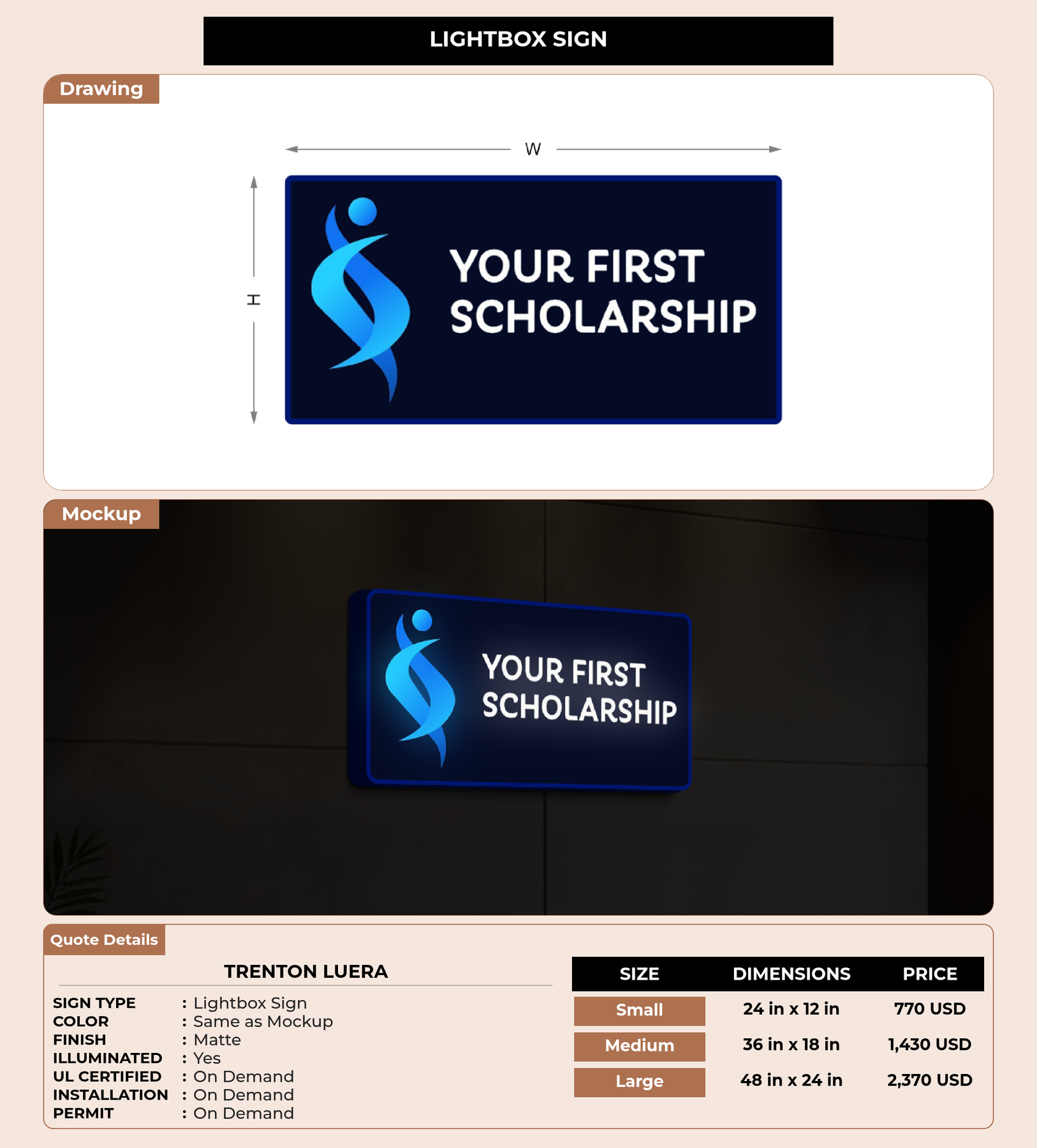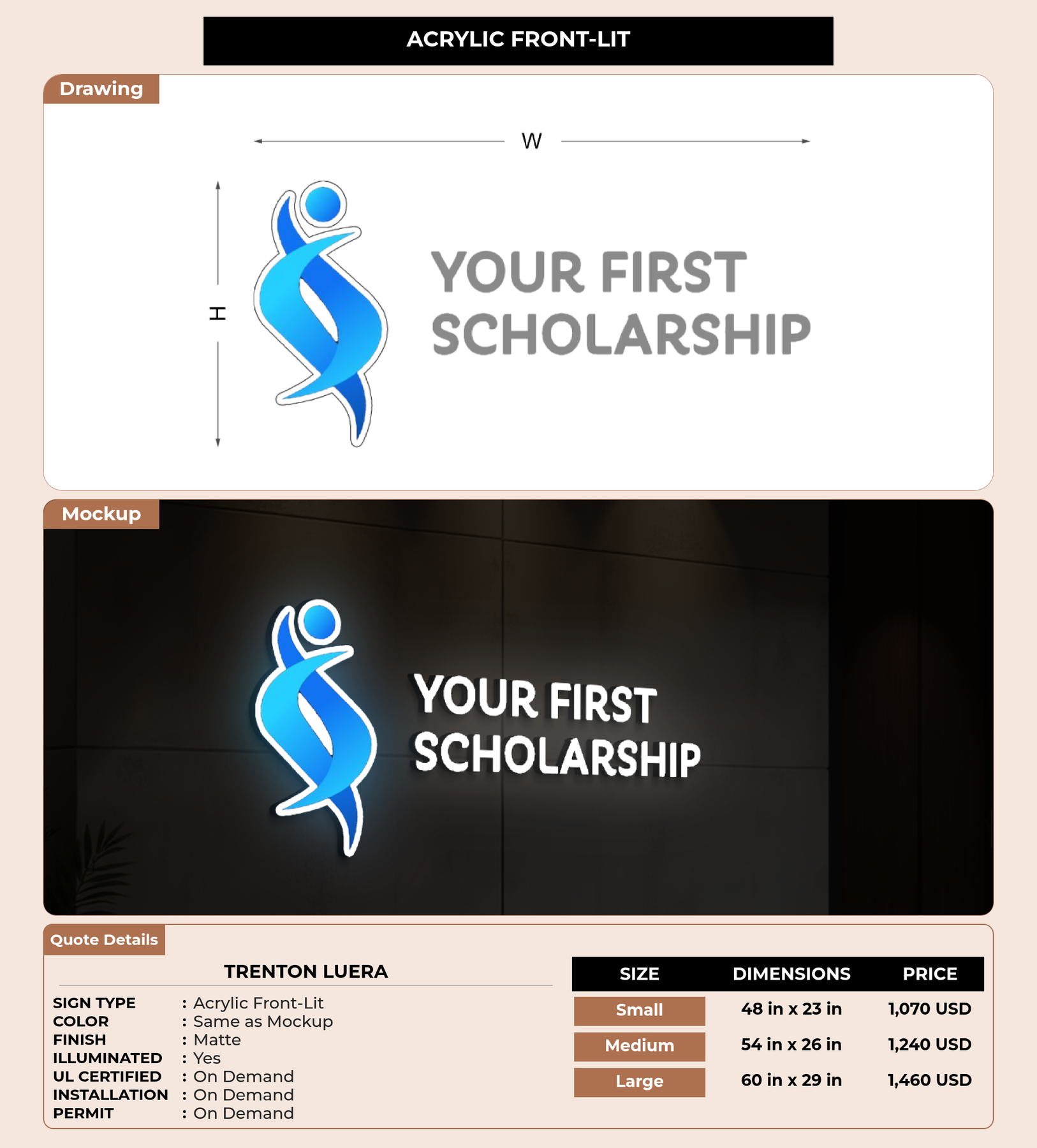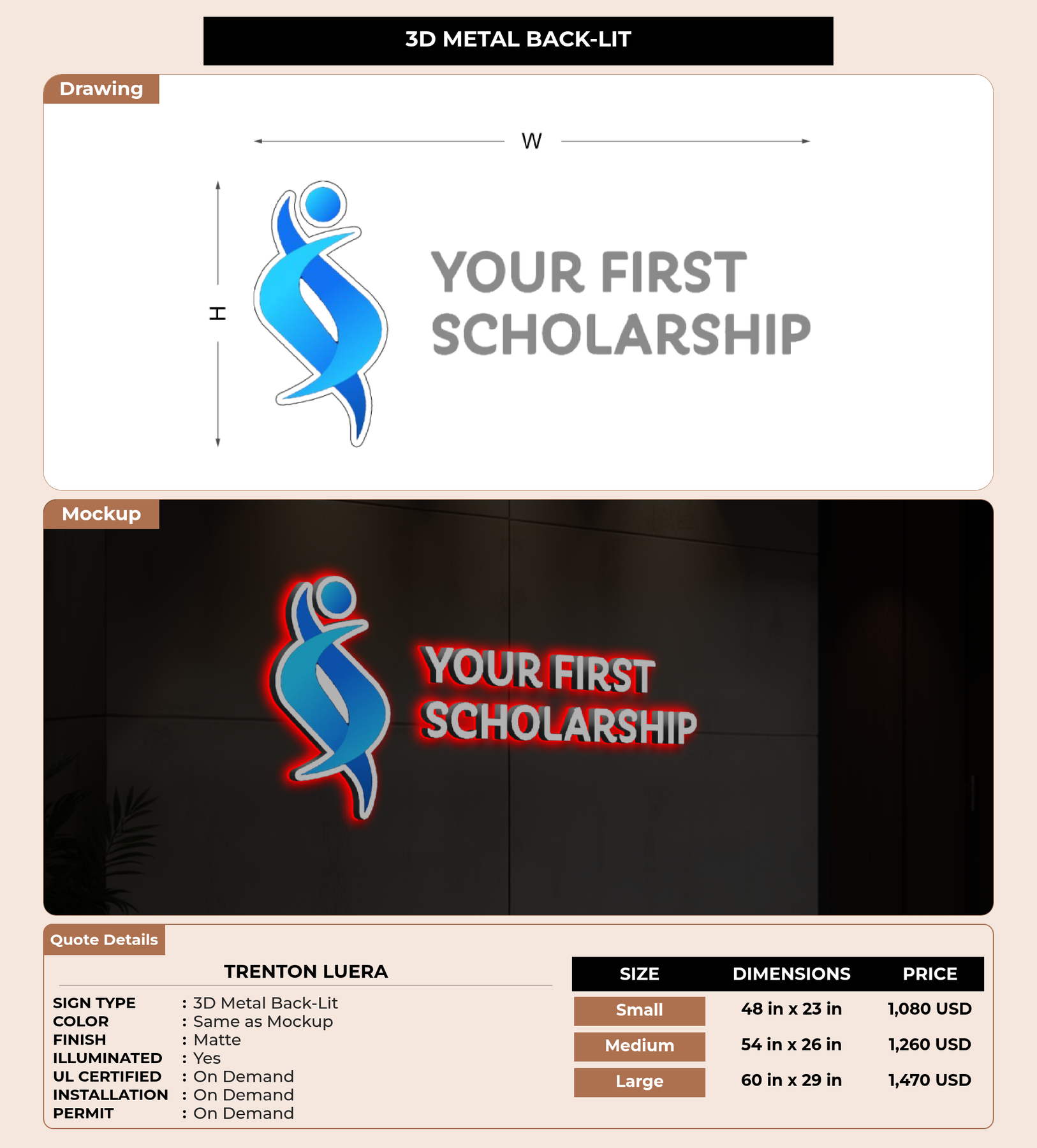 Eye-catching custom 3D sign for Trenton Luera