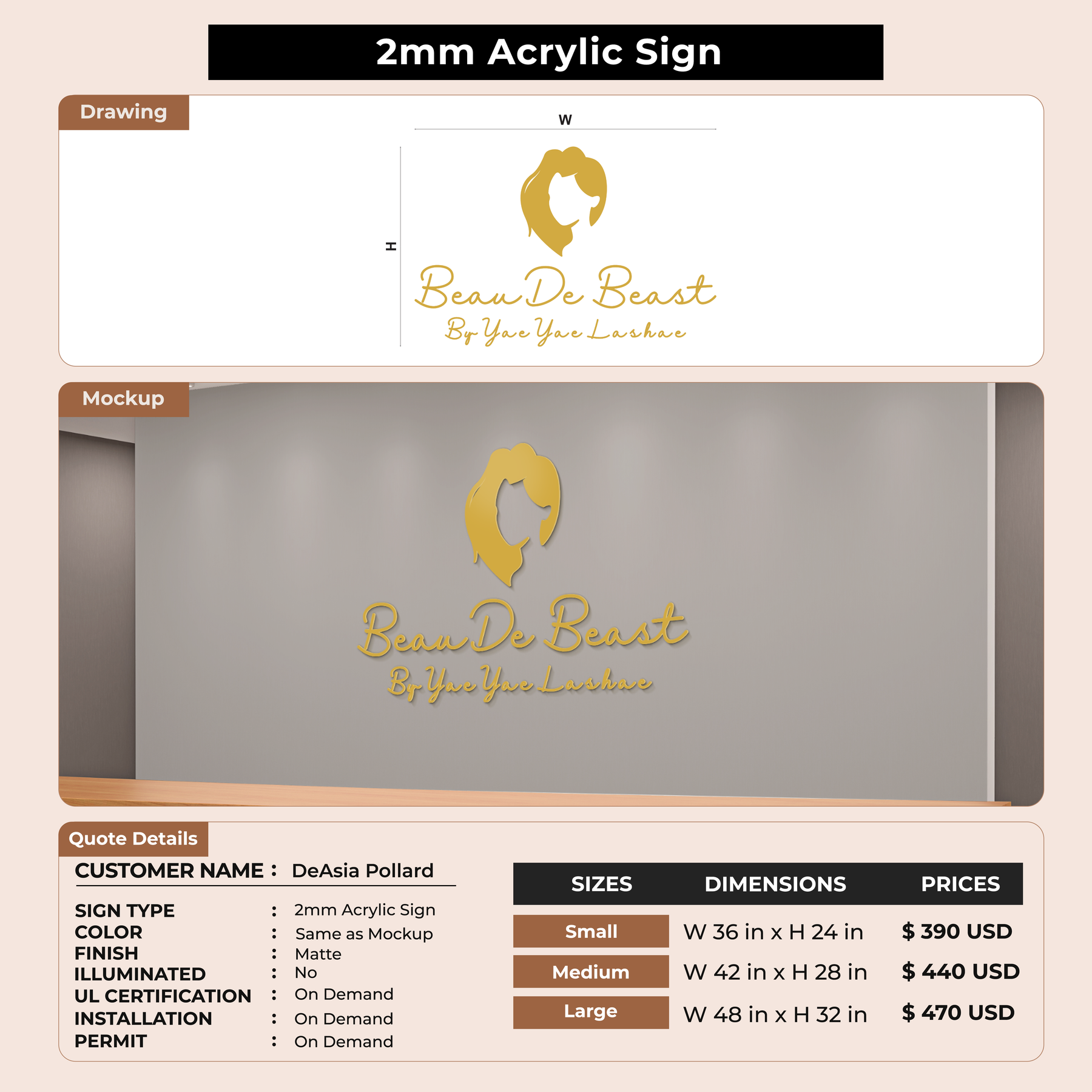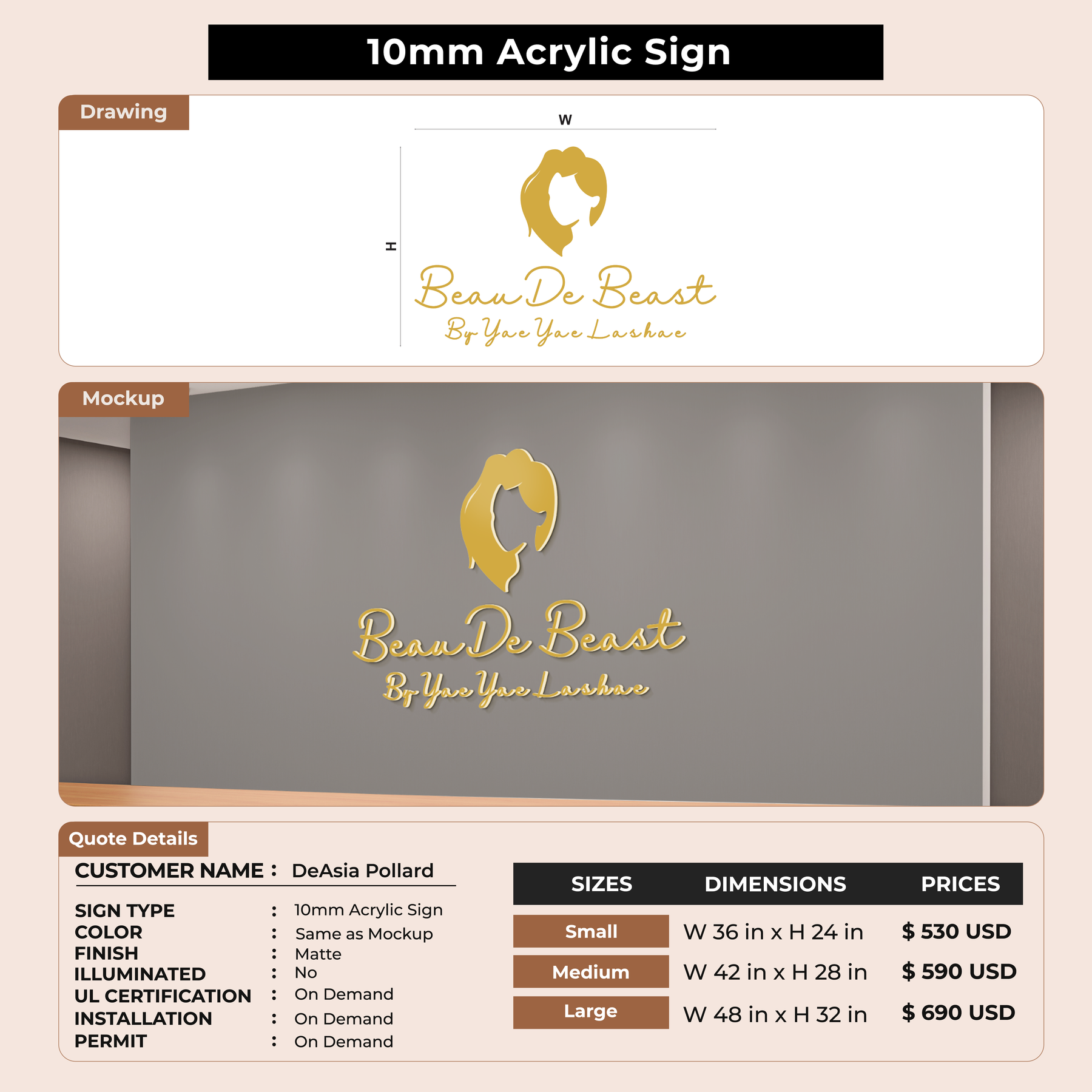Crafted with premium material, this signage will elevate your business image, precisely mirroring your logo for a professional look.