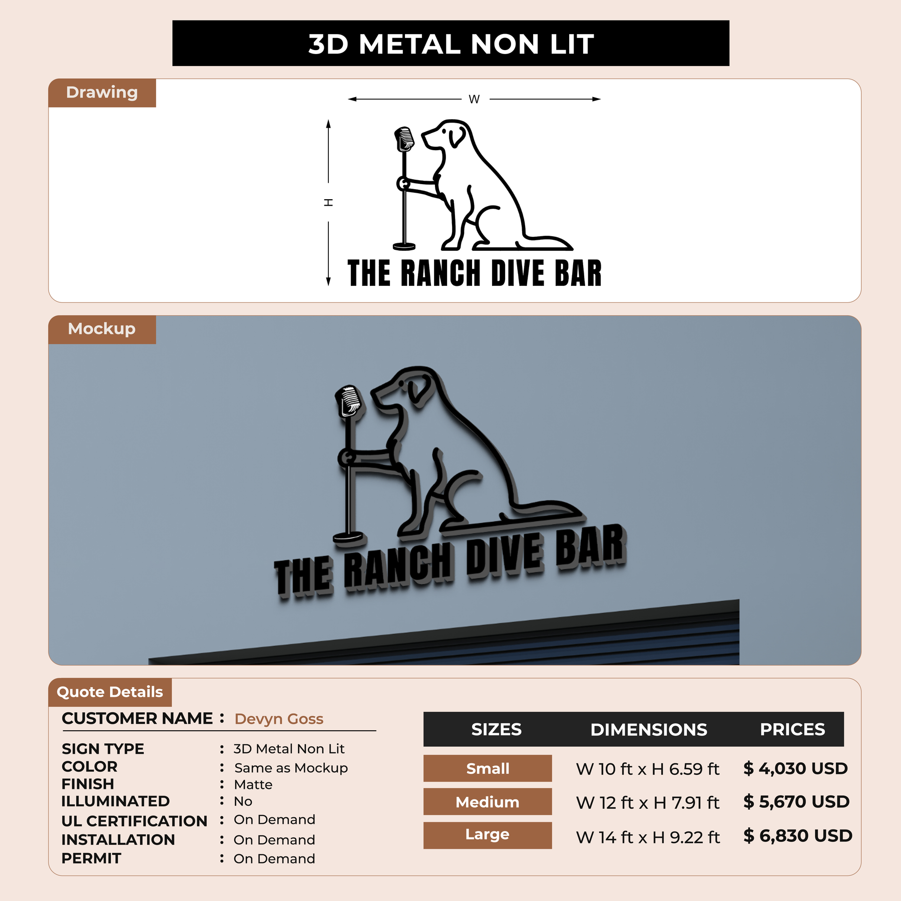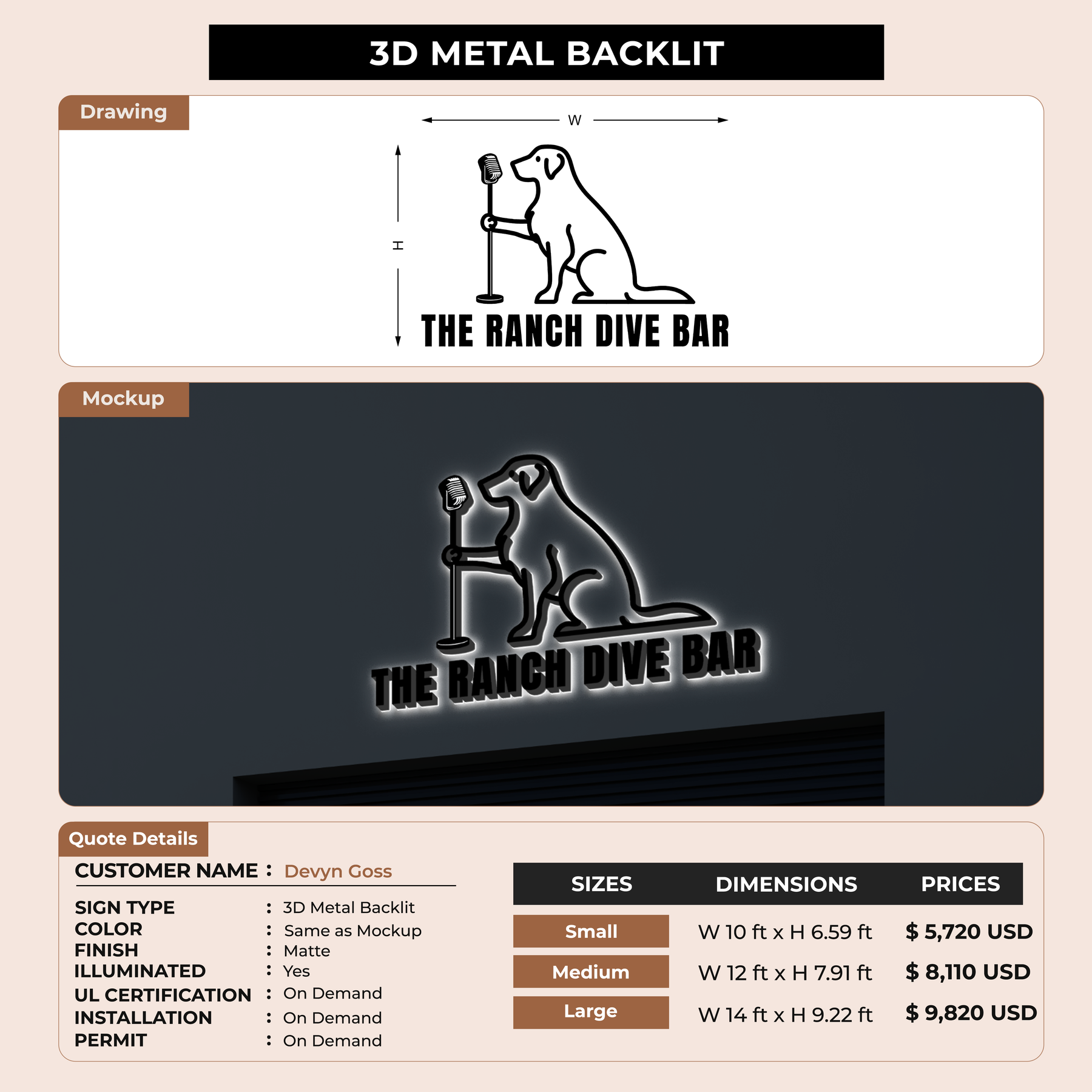 Crafted with premium material, this signage will elevate your business image, precisely mirroring your logo for a professional look.