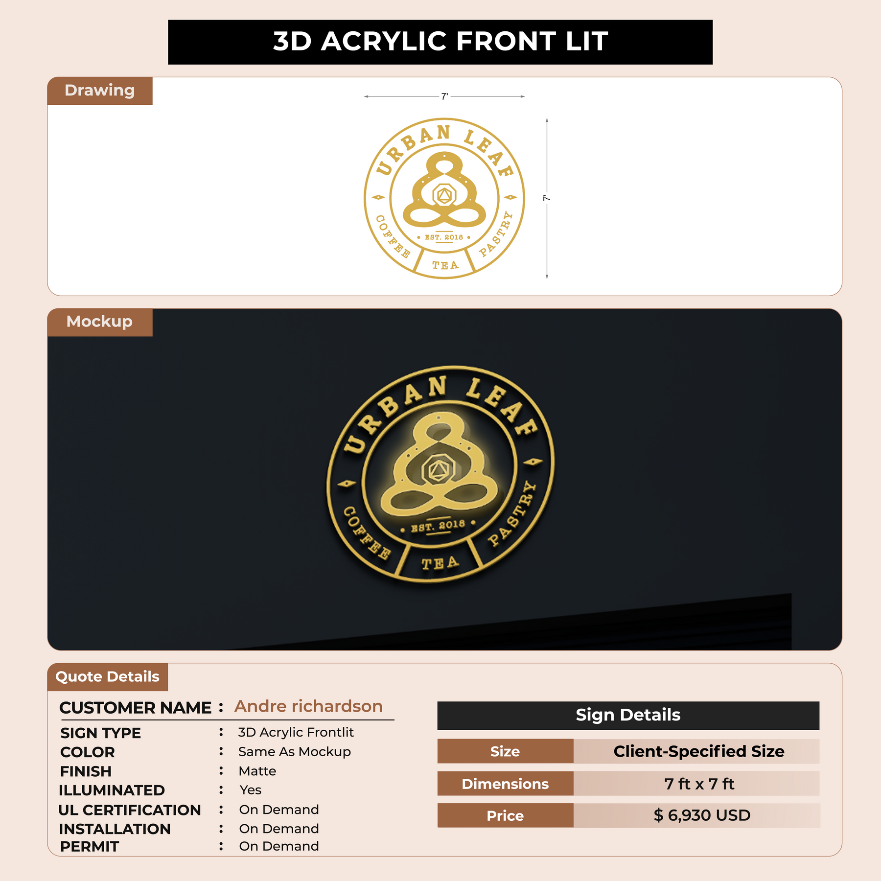 Crafted with premium material, this signage will elevate your business image, precisely mirroring your logo for a professional look.