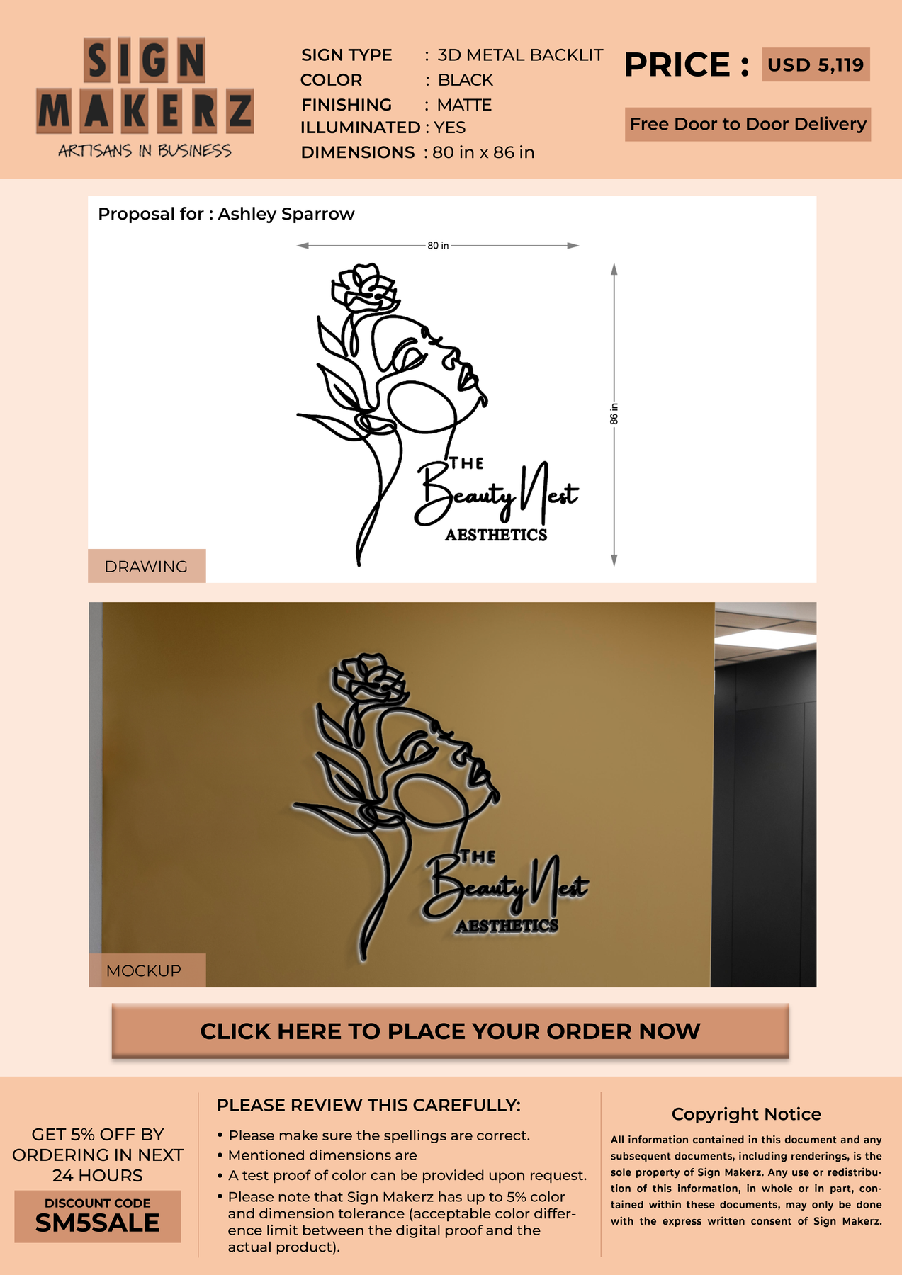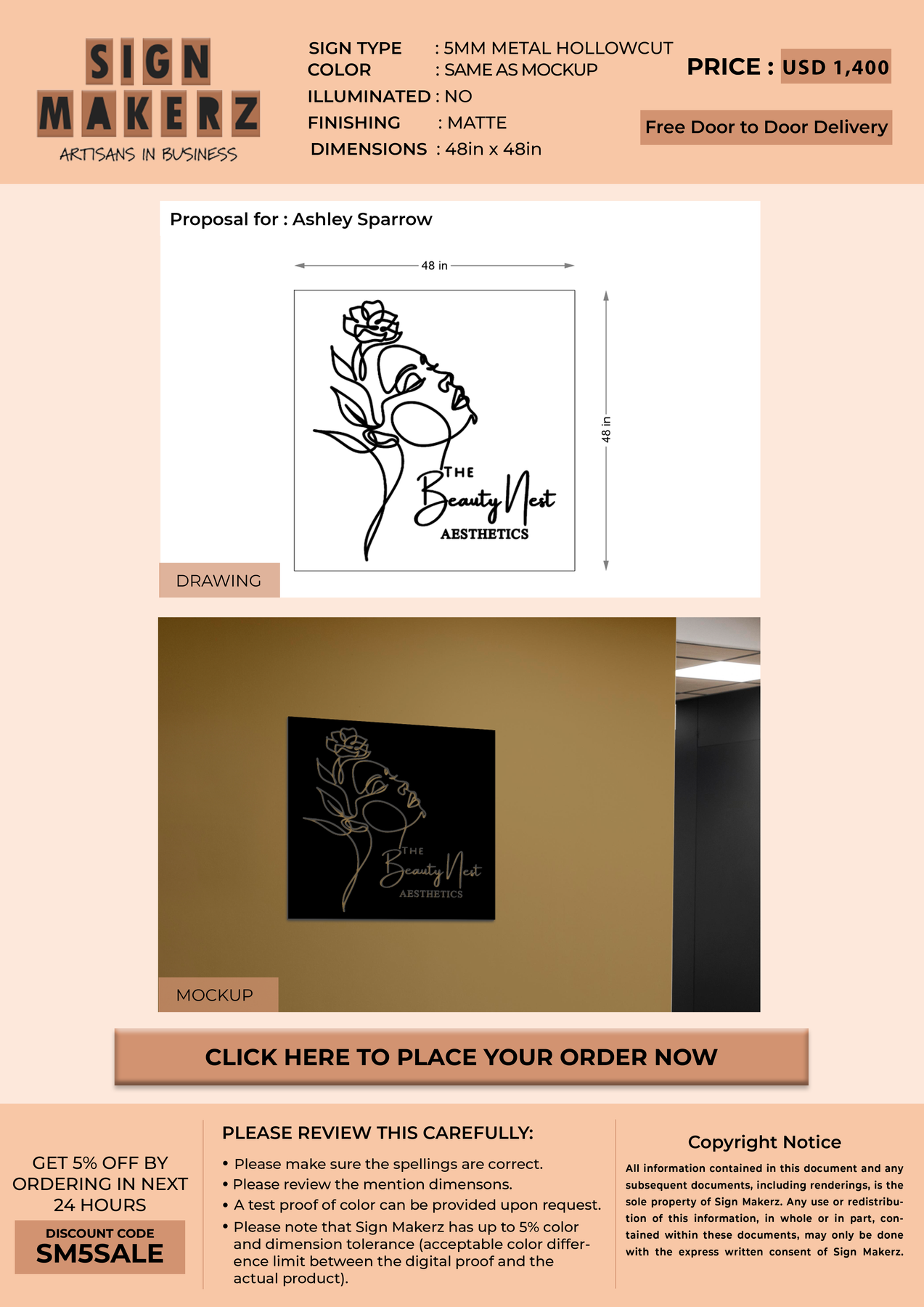 Crafted with premium material, this signage will elevate your business image, precisely mirroring your logo for a professional look.