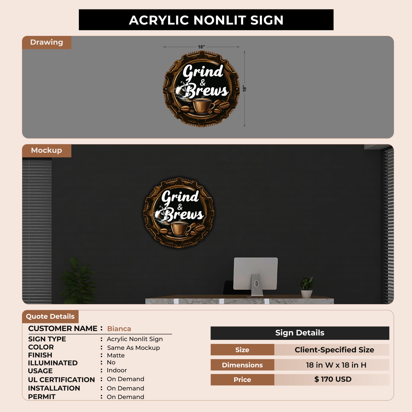 Crafted with premium material, this signage will elevate your business image, precisely mirroring your logo for a professional look.