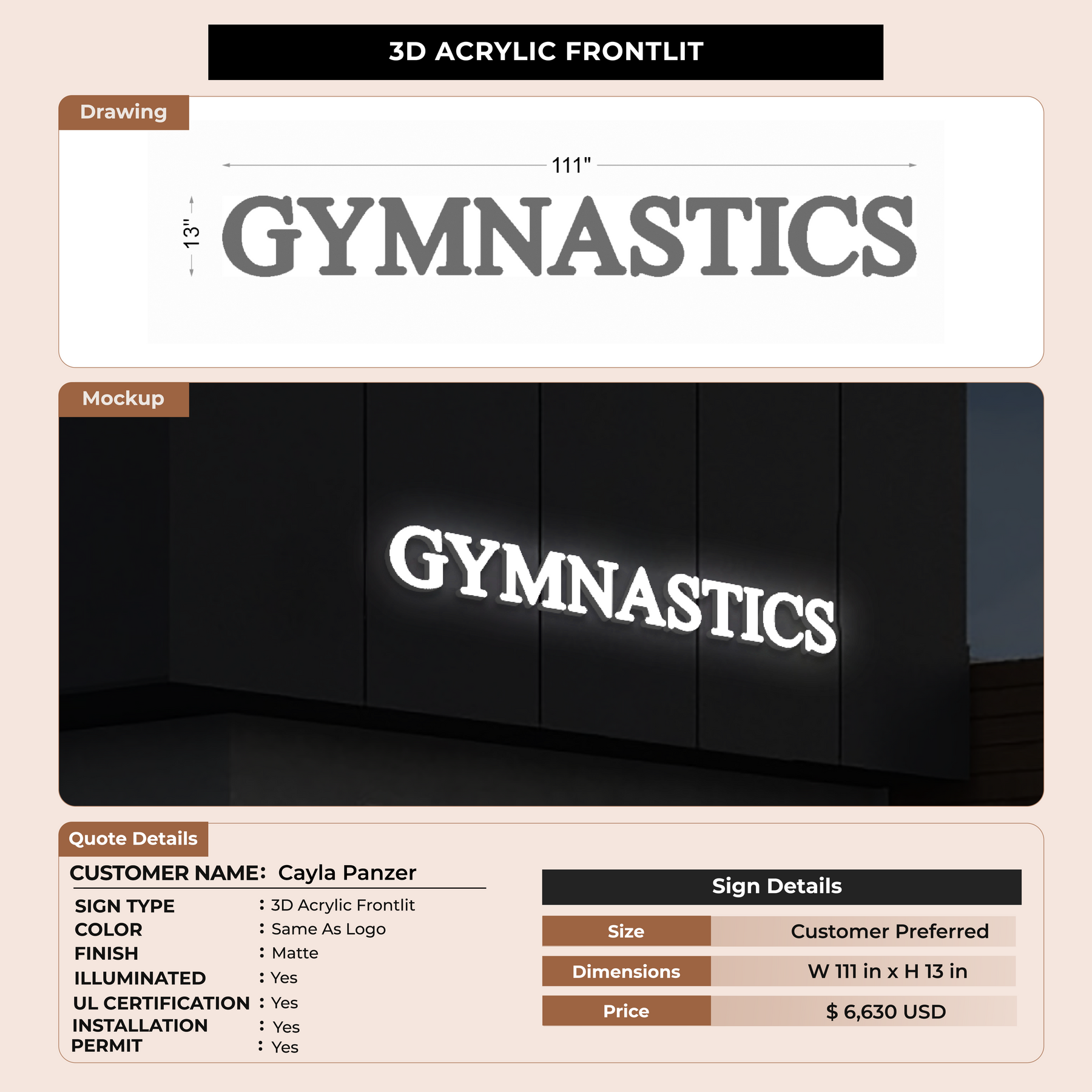 3D Acrylic Front-lit Signs For Cayla Panzer