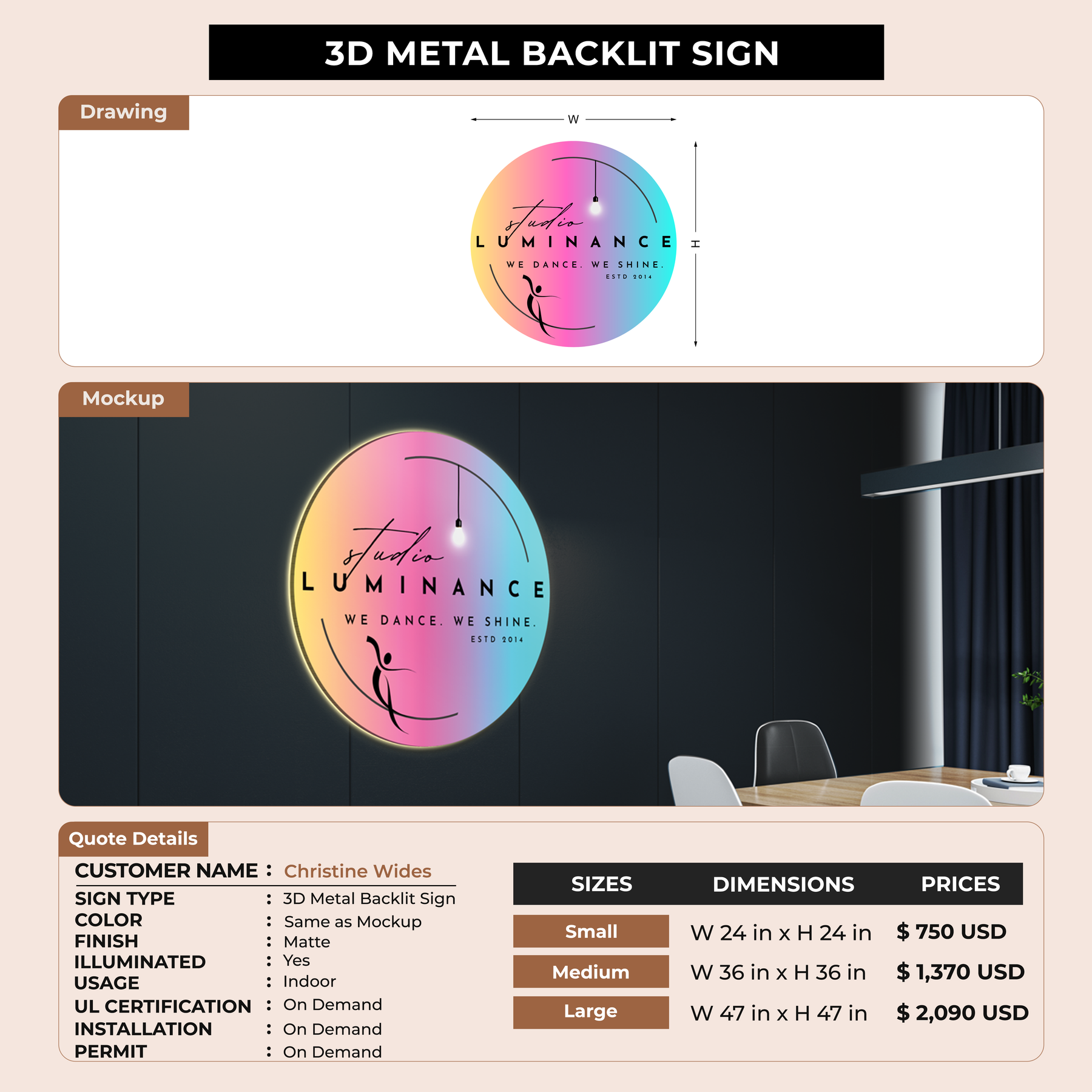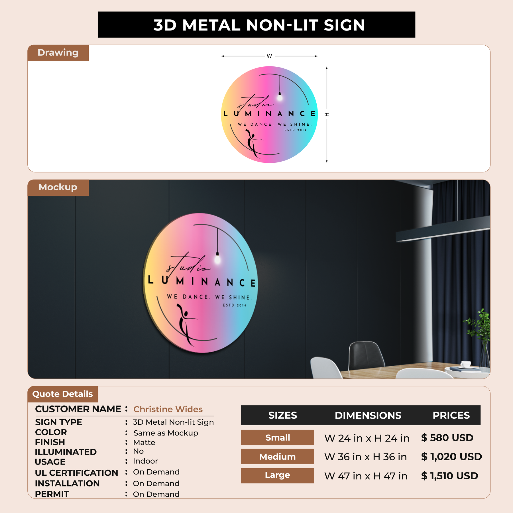 Crafted with premium material, this signage will elevate your business image, precisely mirroring your logo for a professional look.