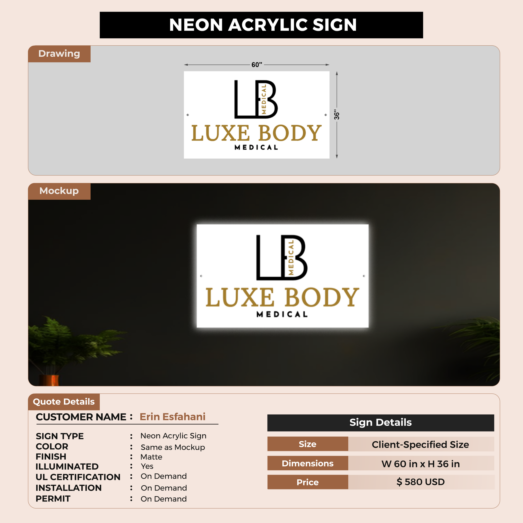 Neon Acrylic Signs For Erin Esfahani