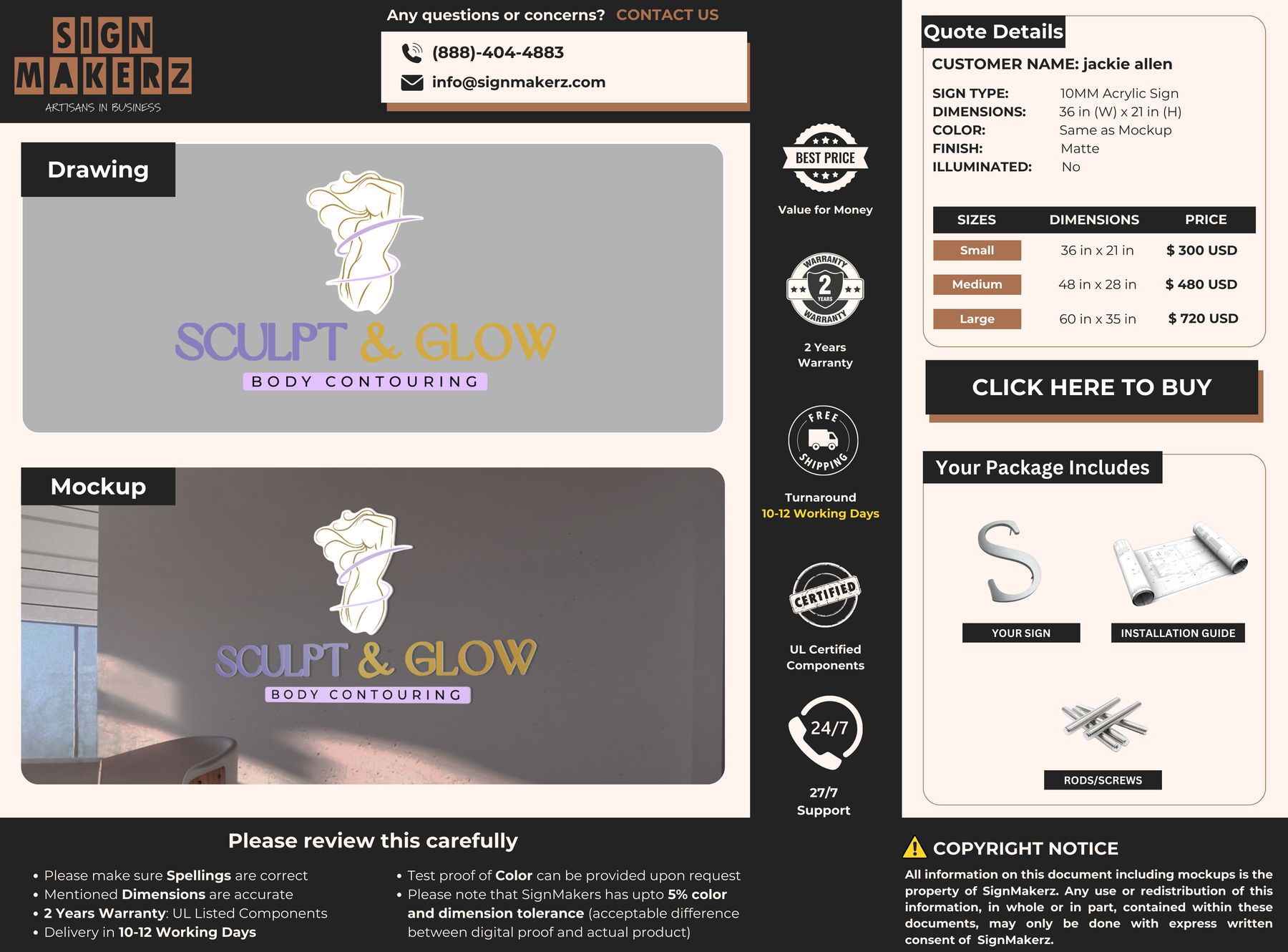 Crafted with premium material, this signage will elevate your business image, precisely mirroring your logo for a professional look.