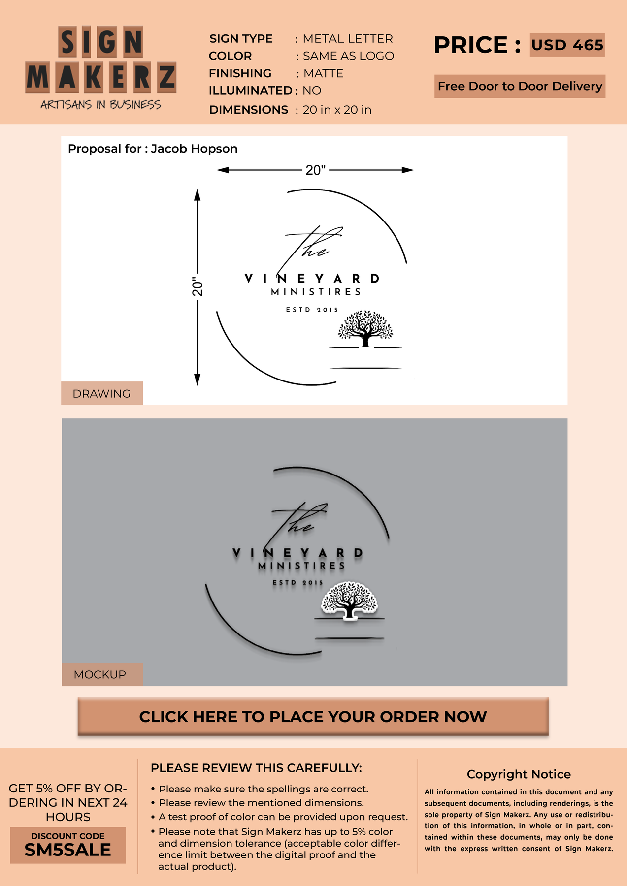 Crafted with premium material, this signage will elevate your business image, precisely mirroring your logo for a professional look.