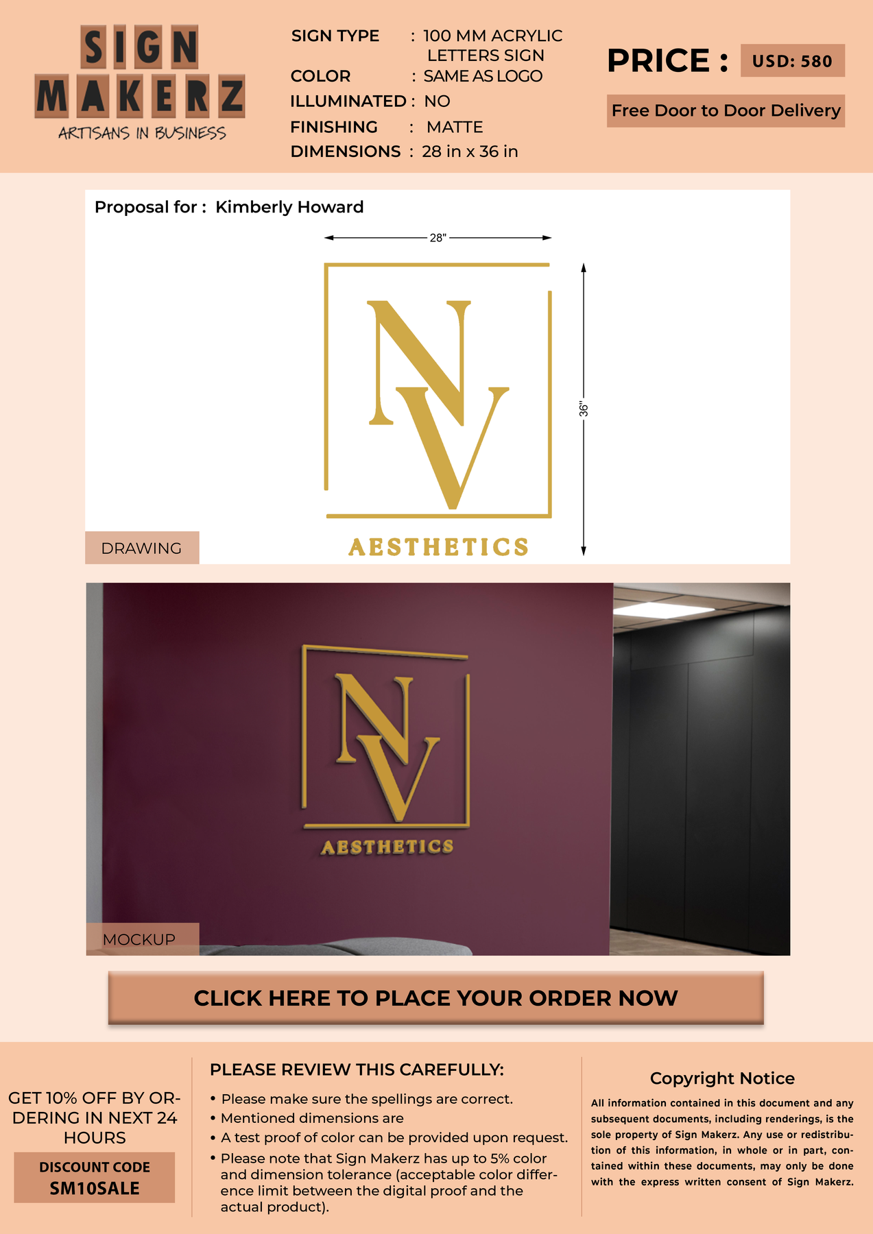 Crafted with premium material, this signage will elevate your business image, precisely mirroring your logo for a professional look.