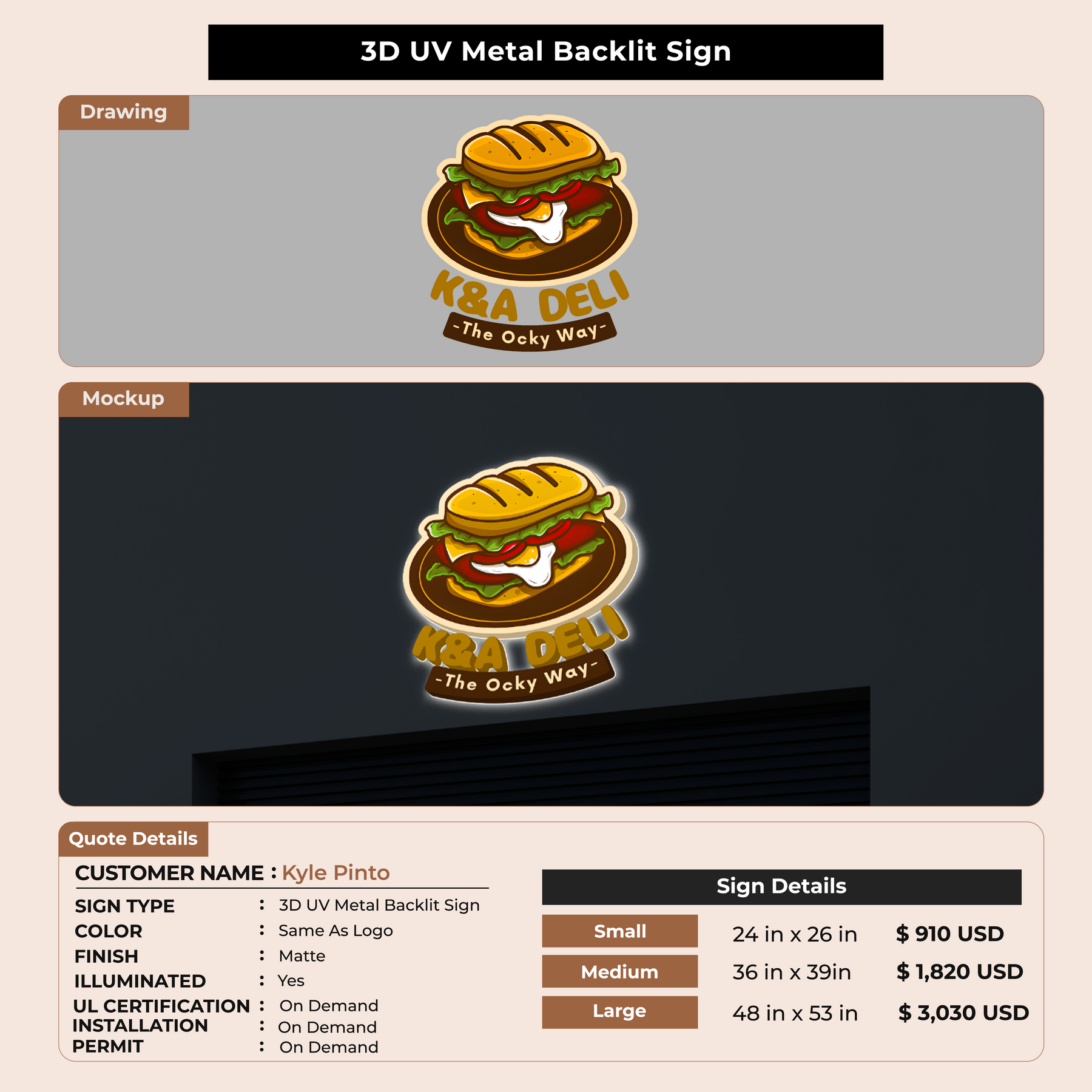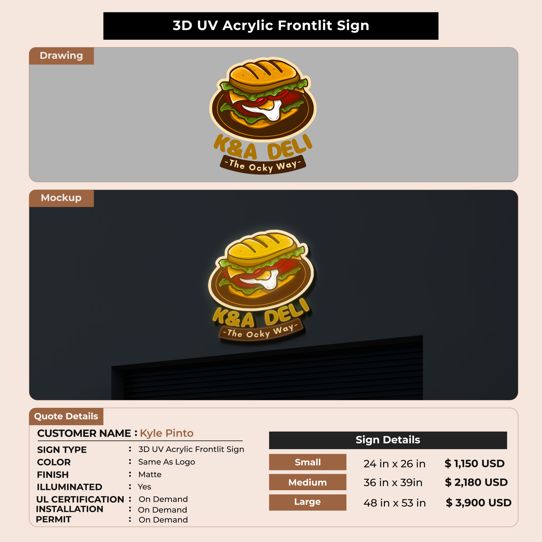 Custom Signs for Kyle Pinto