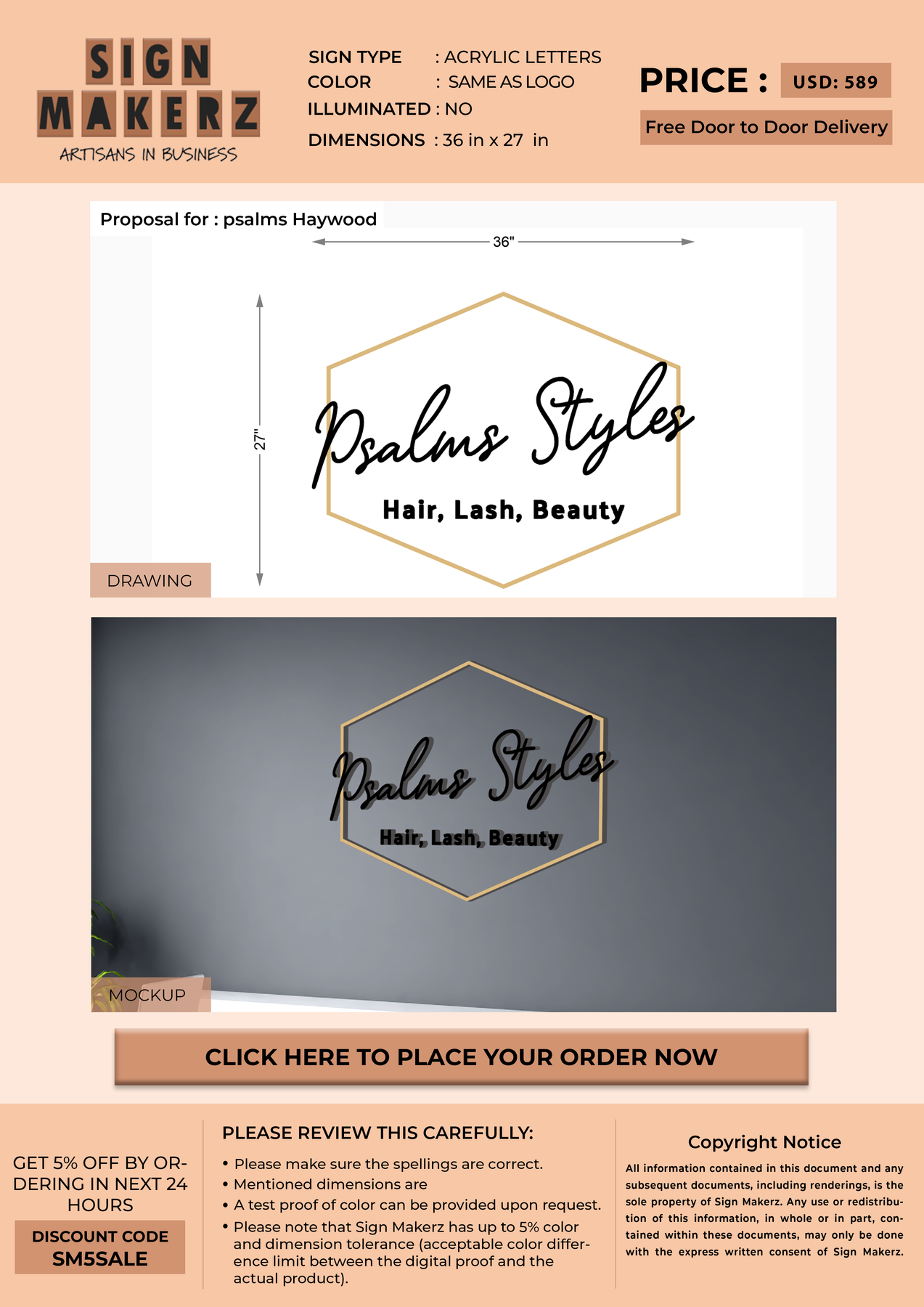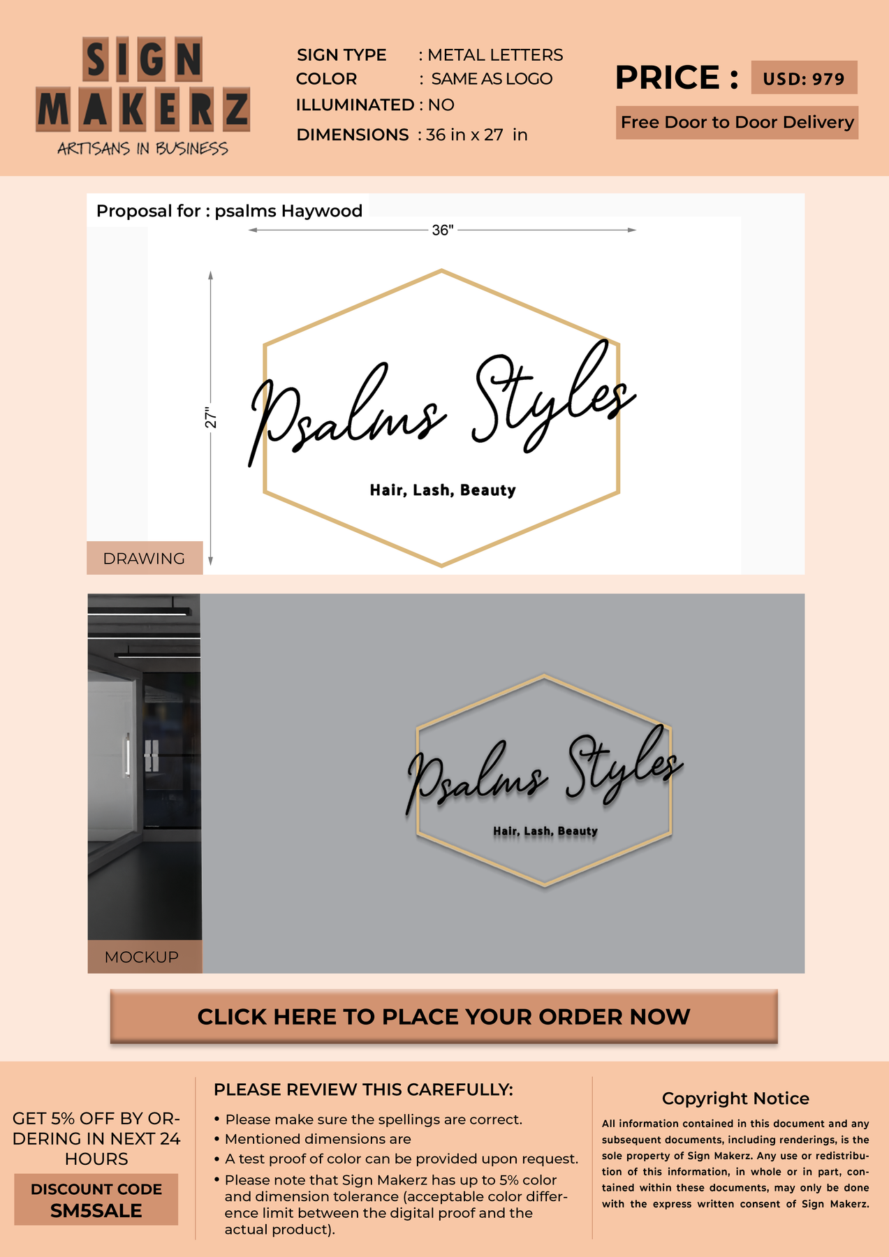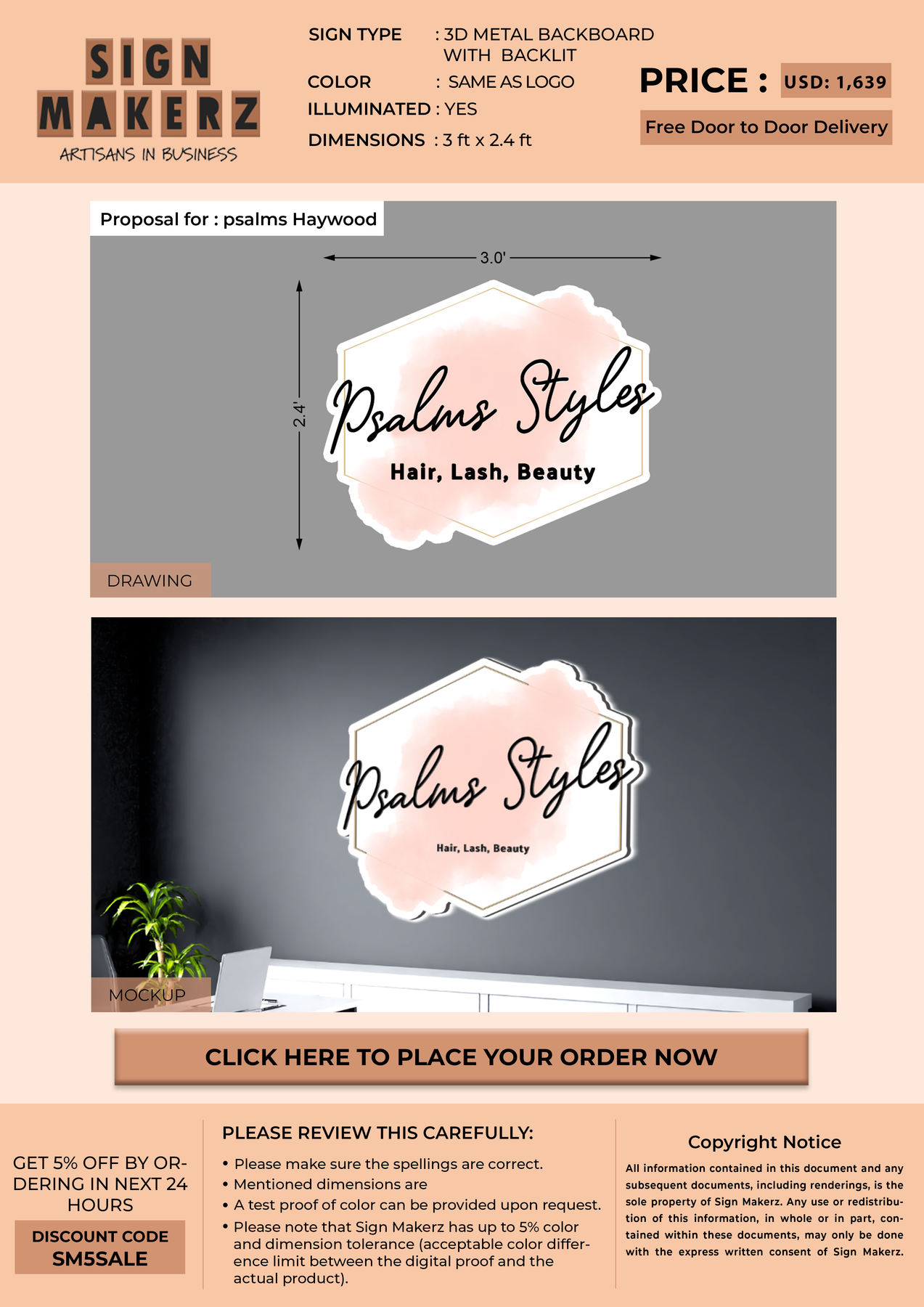 Crafted with premium material, this signage will elevate your business image, precisely mirroring your logo for a professional look.