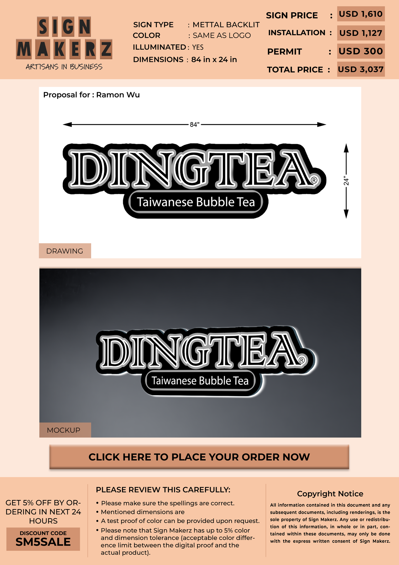 Crafted with premium material, this signage will elevate your business image, precisely mirroring your logo for a professional look.
