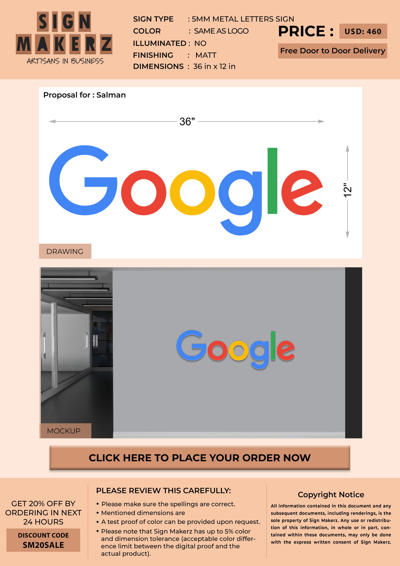 Crafted with premium material, this signage will elevate your business image, precisely mirroring your logo for a professional look.
