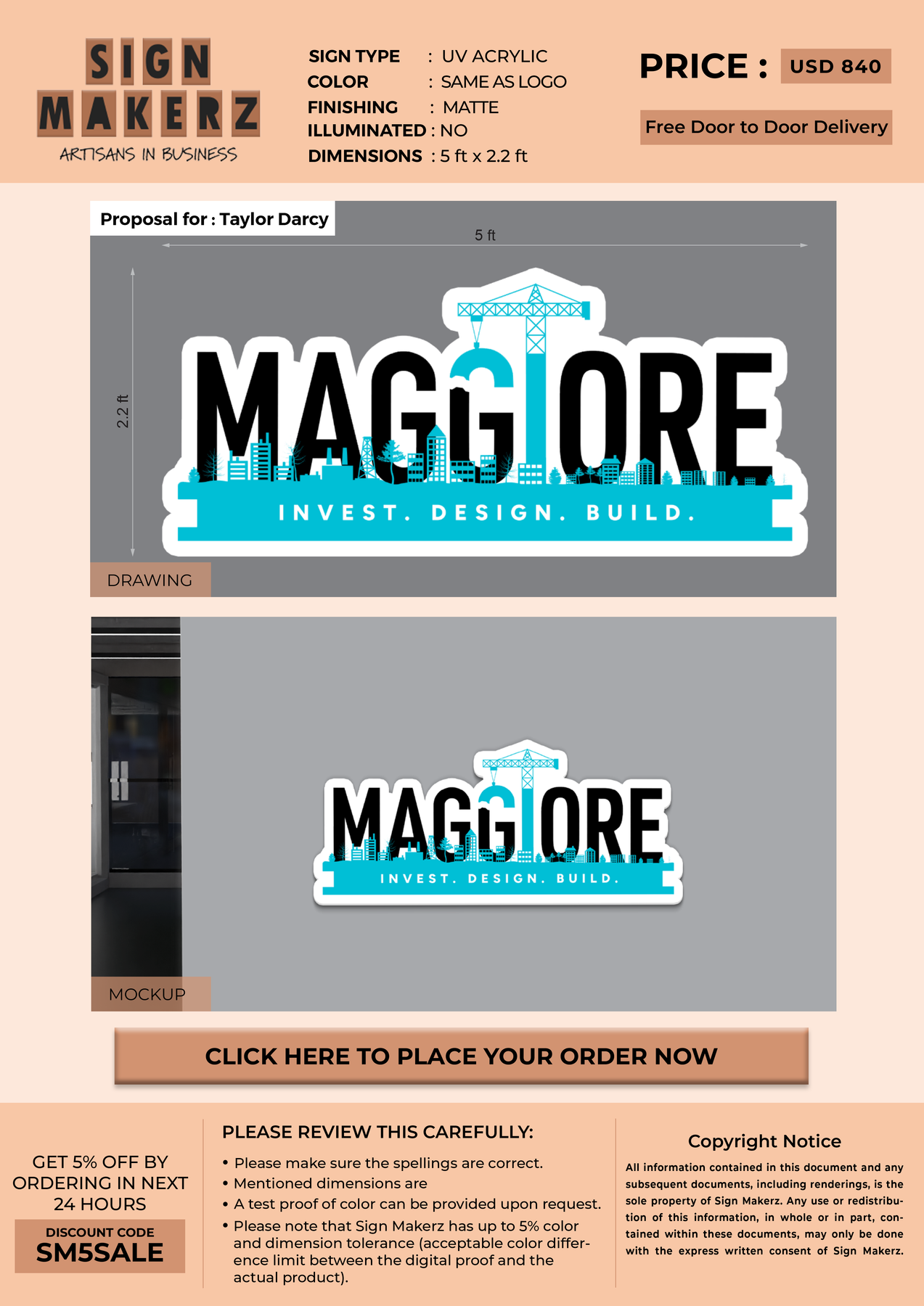 Crafted with premium material, this signage will elevate your business image, precisely mirroring your logo for a professional look.