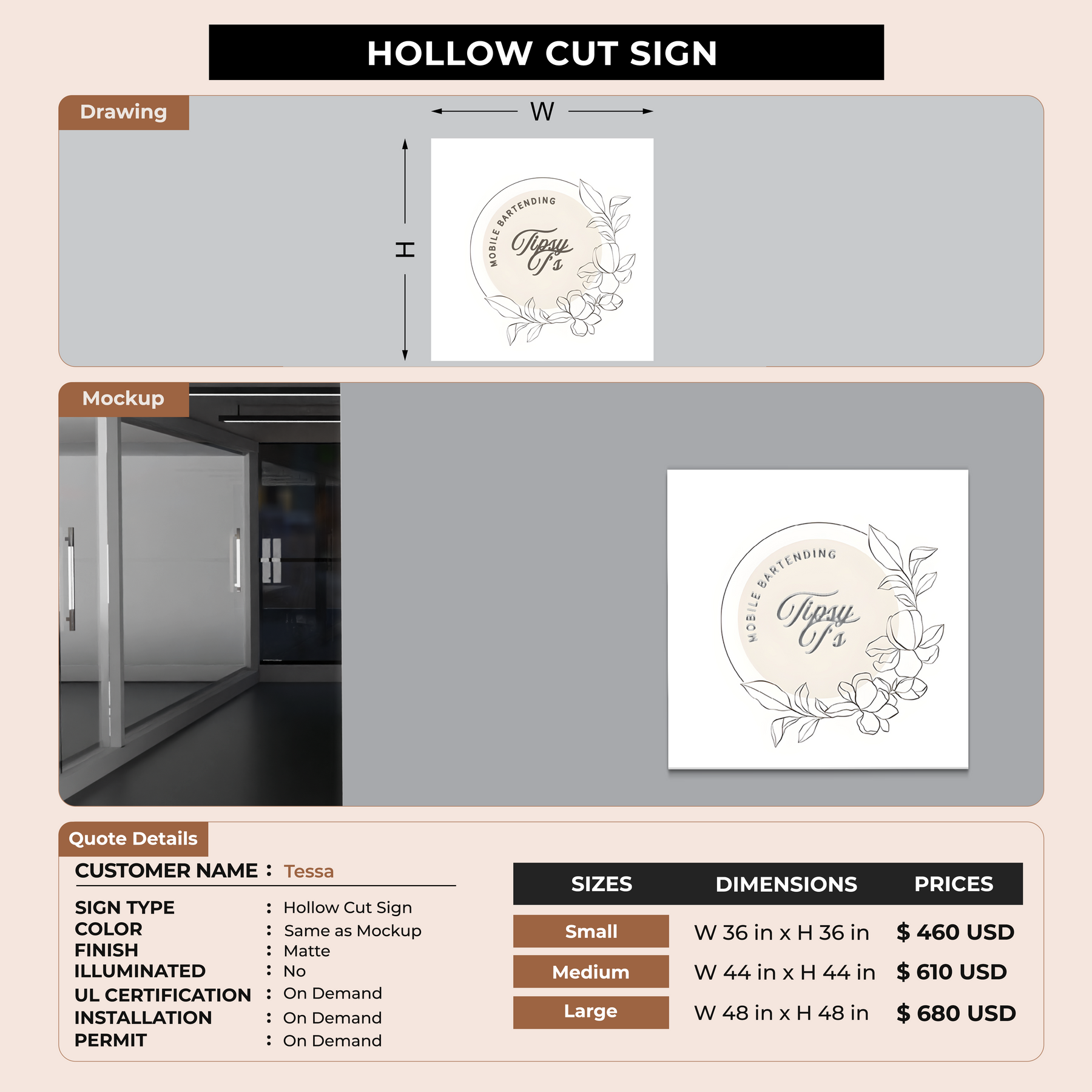 Crafted with premium material, this signage will elevate your business image, precisely mirroring your logo for a professional look.