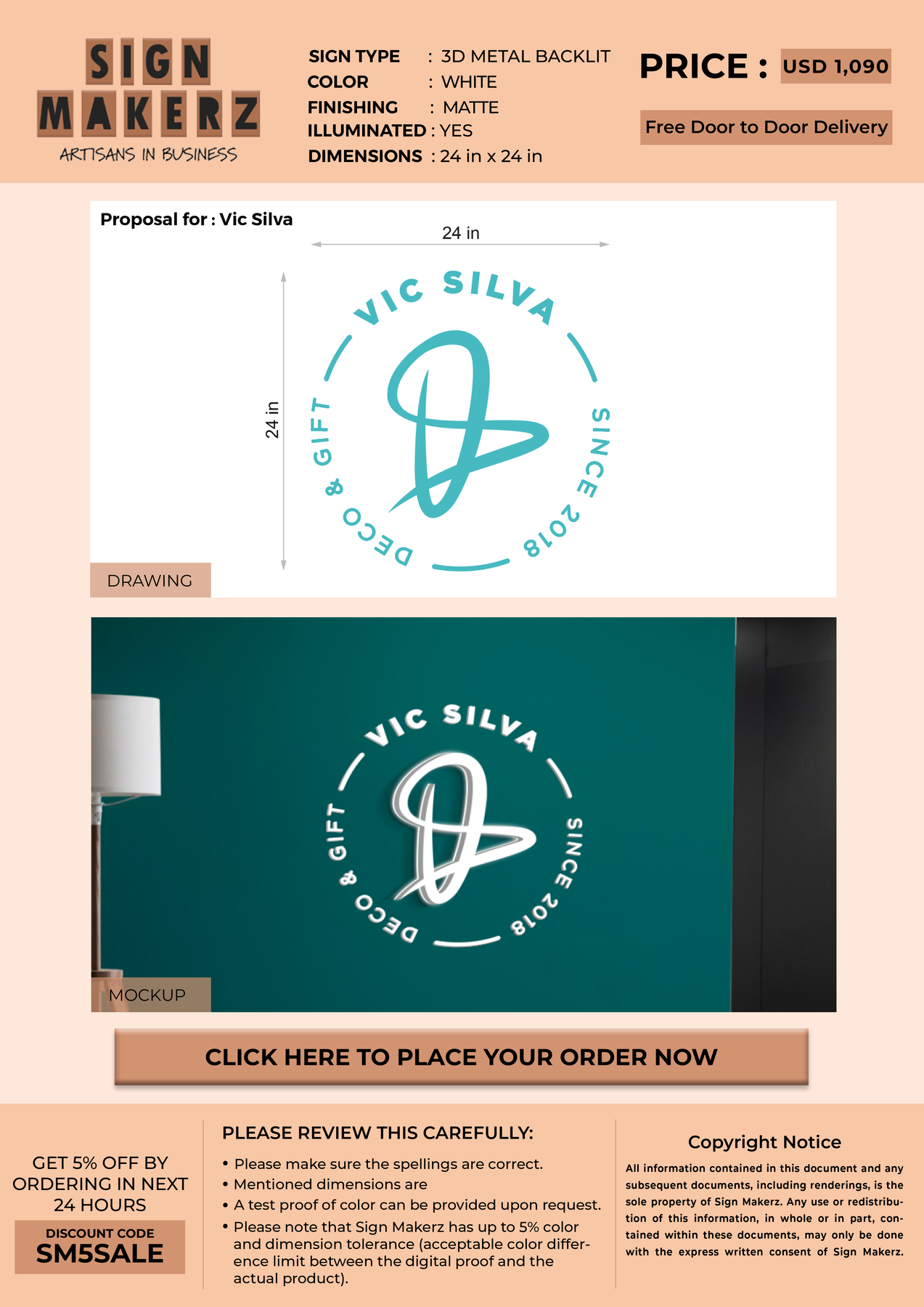 3D Metal Backlit Sign for Vic Silva