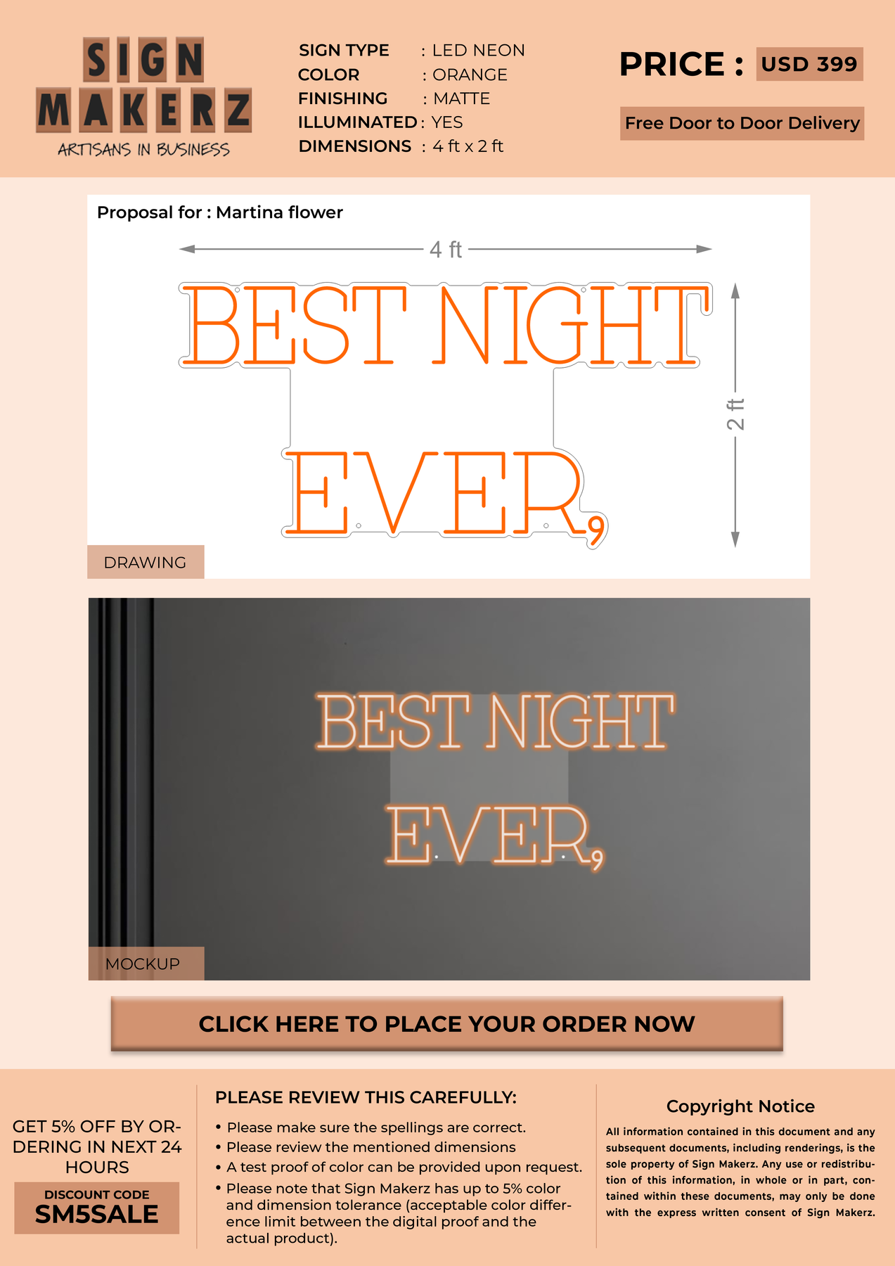 LED Neon Sign for Martina Flowers