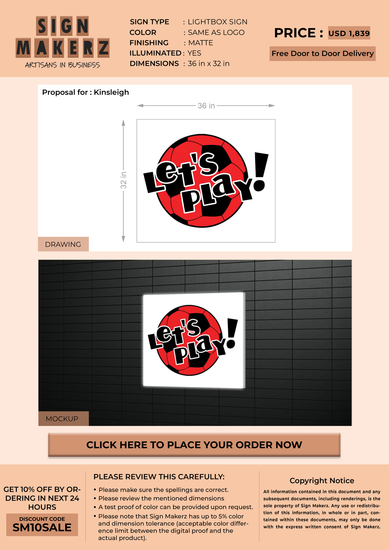 Light Box Sign for Kinsleigh