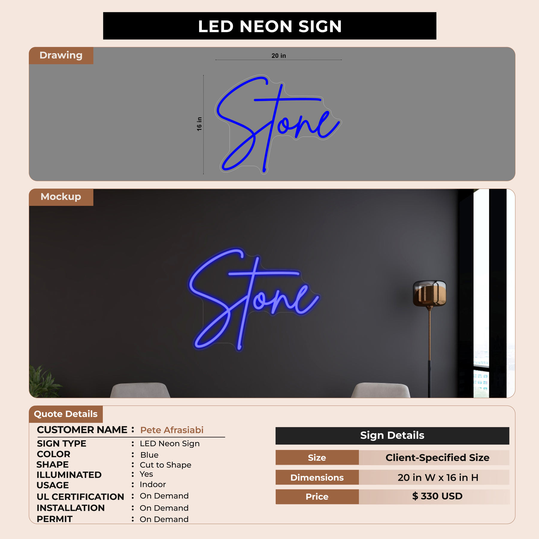 Crafted with premium material, this signage will elevate your business image, precisely mirroring your logo for a professional look.