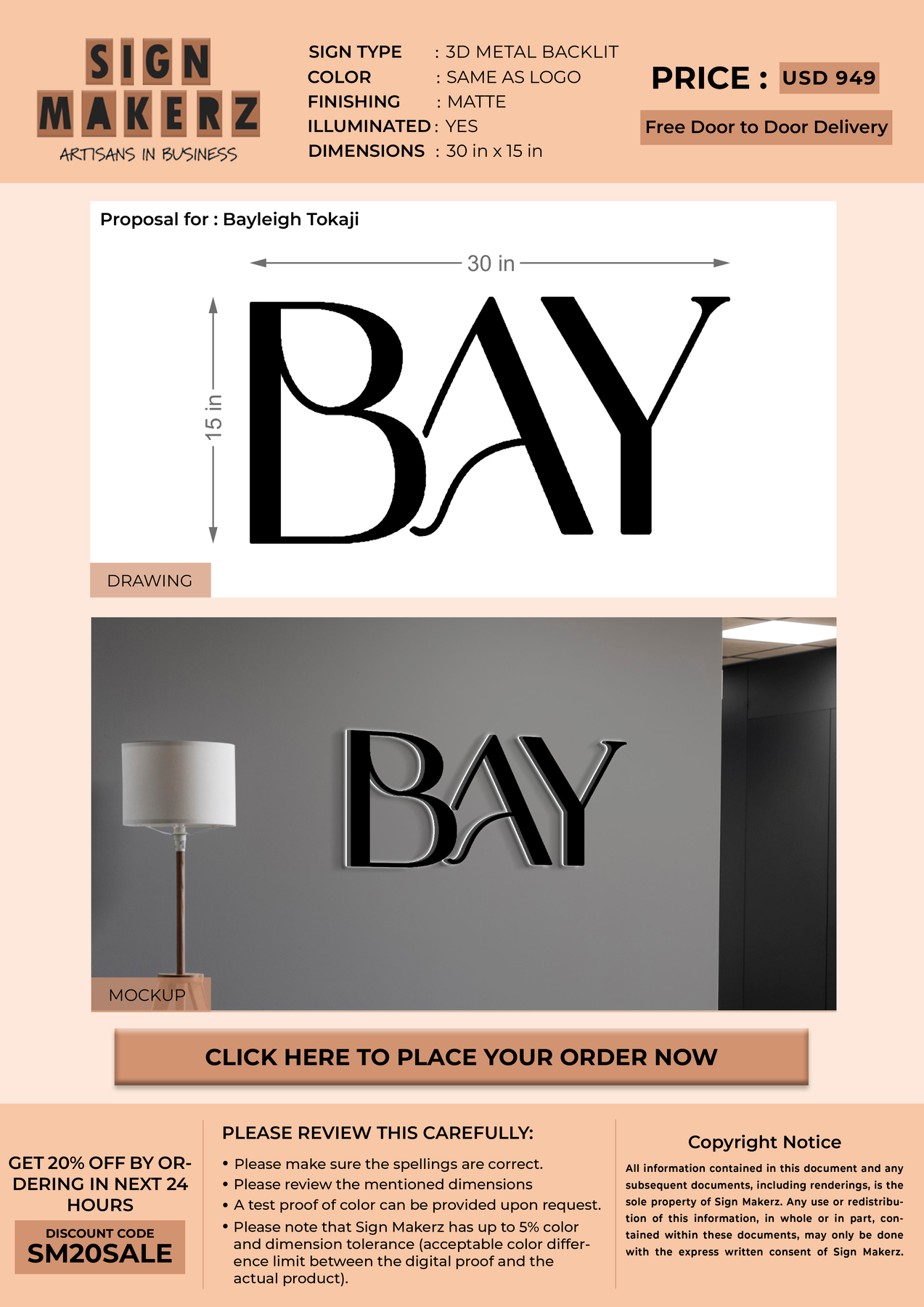 Crafted with premium material, this signage will elevate your business image, precisely mirroring your logo for a professional look.