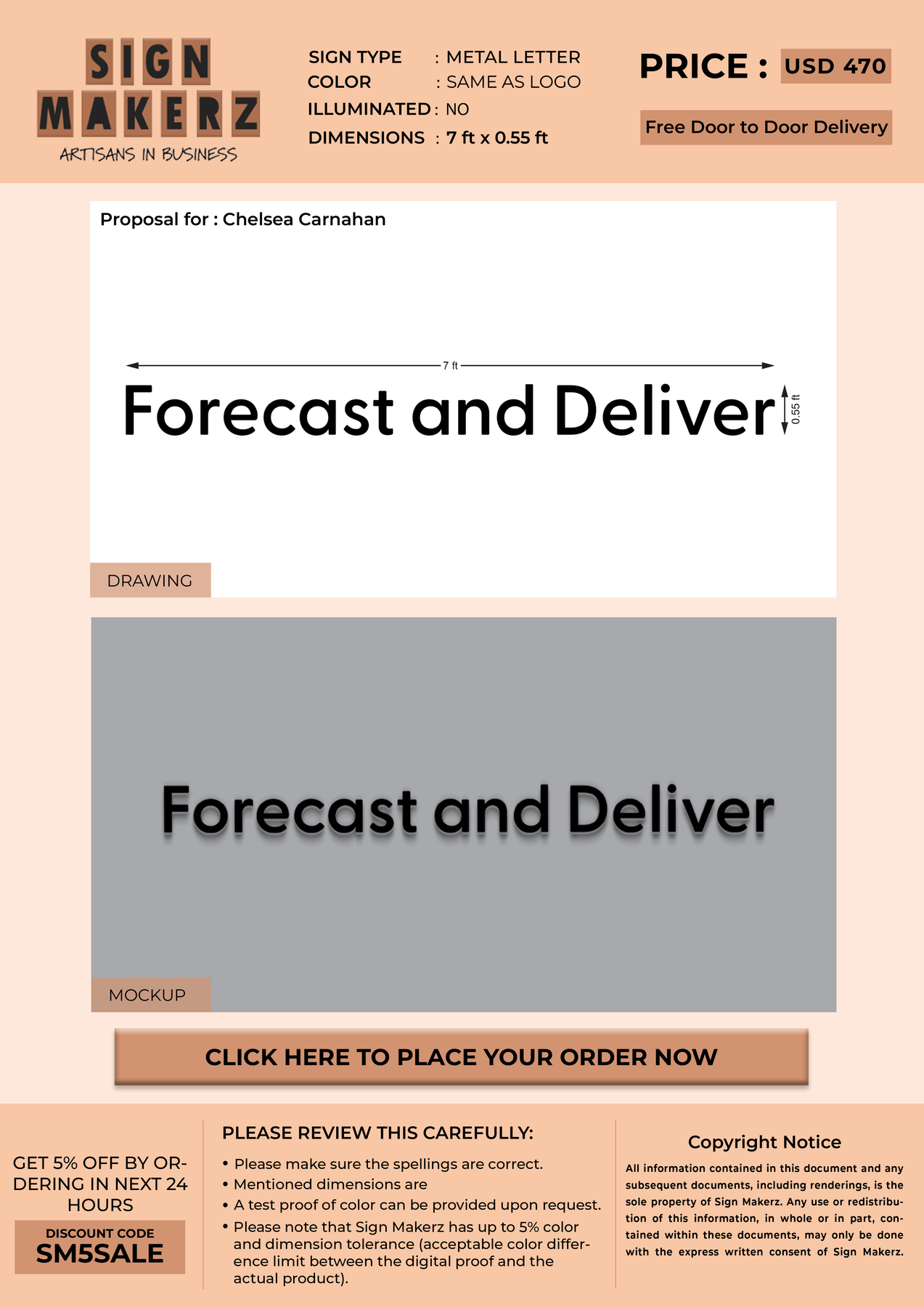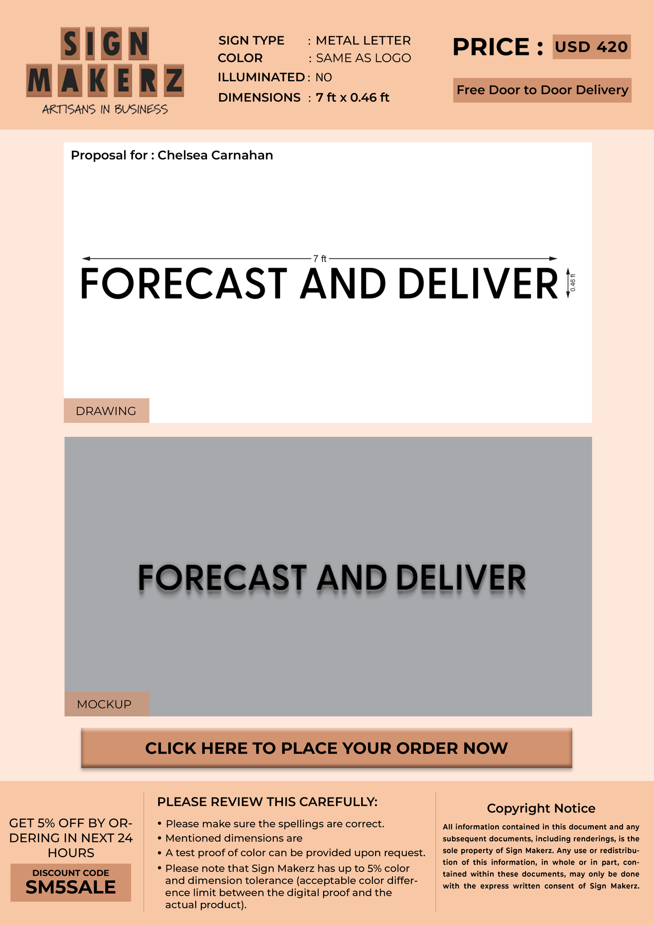 Crafted with premium material, this signage will elevate your business image, precisely mirroring your logo for a professional look.