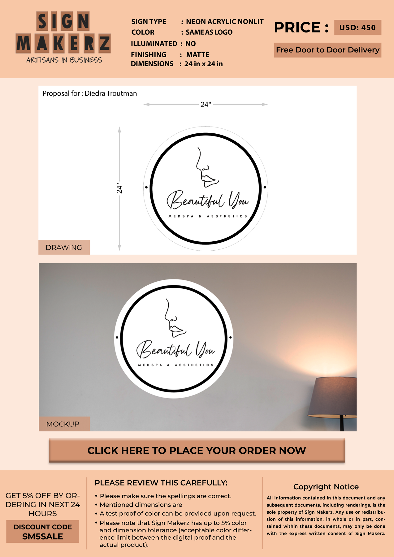 Neon Acrylic Nonlit Sign For Diedra Troutman