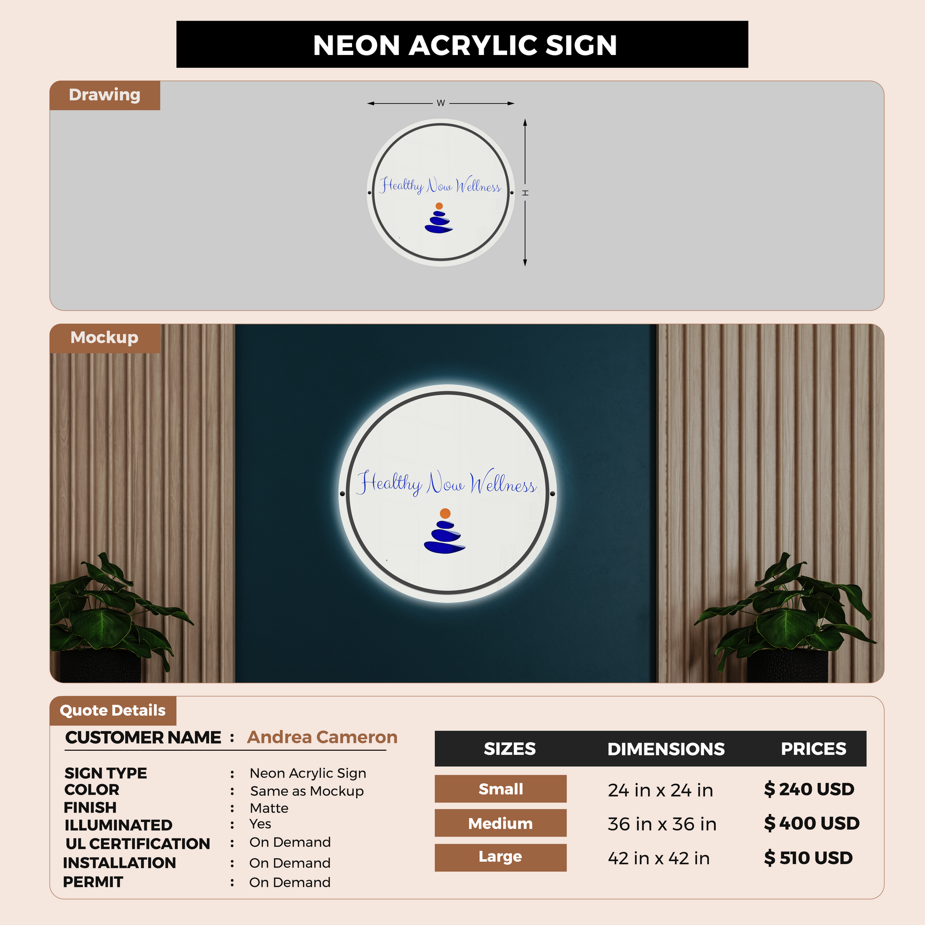Neon Acrylic Sign for Andrea Cameron