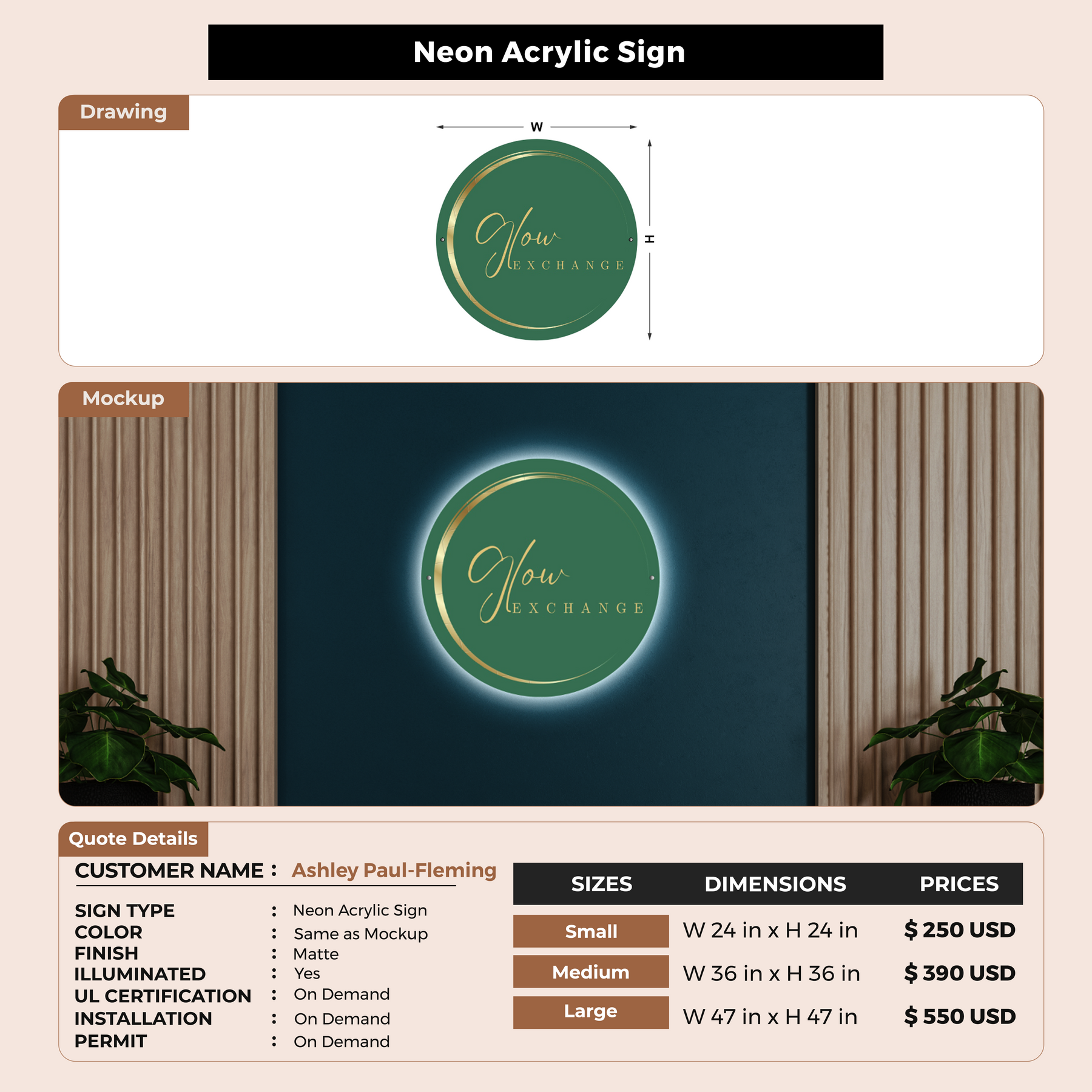 Neon Acrylic Sign For Ashley Paul-Fleming