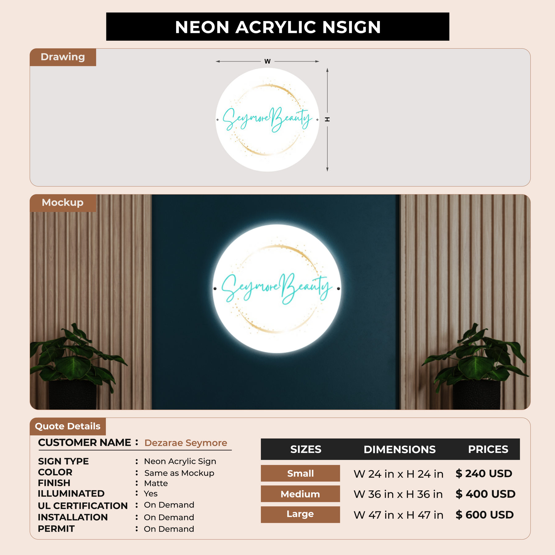 Neon Acrylic Sign For Dezarae Seymore