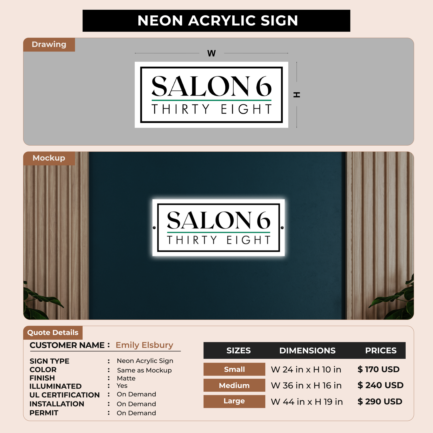 Neon Acrylic Sign for Emily Elsbury