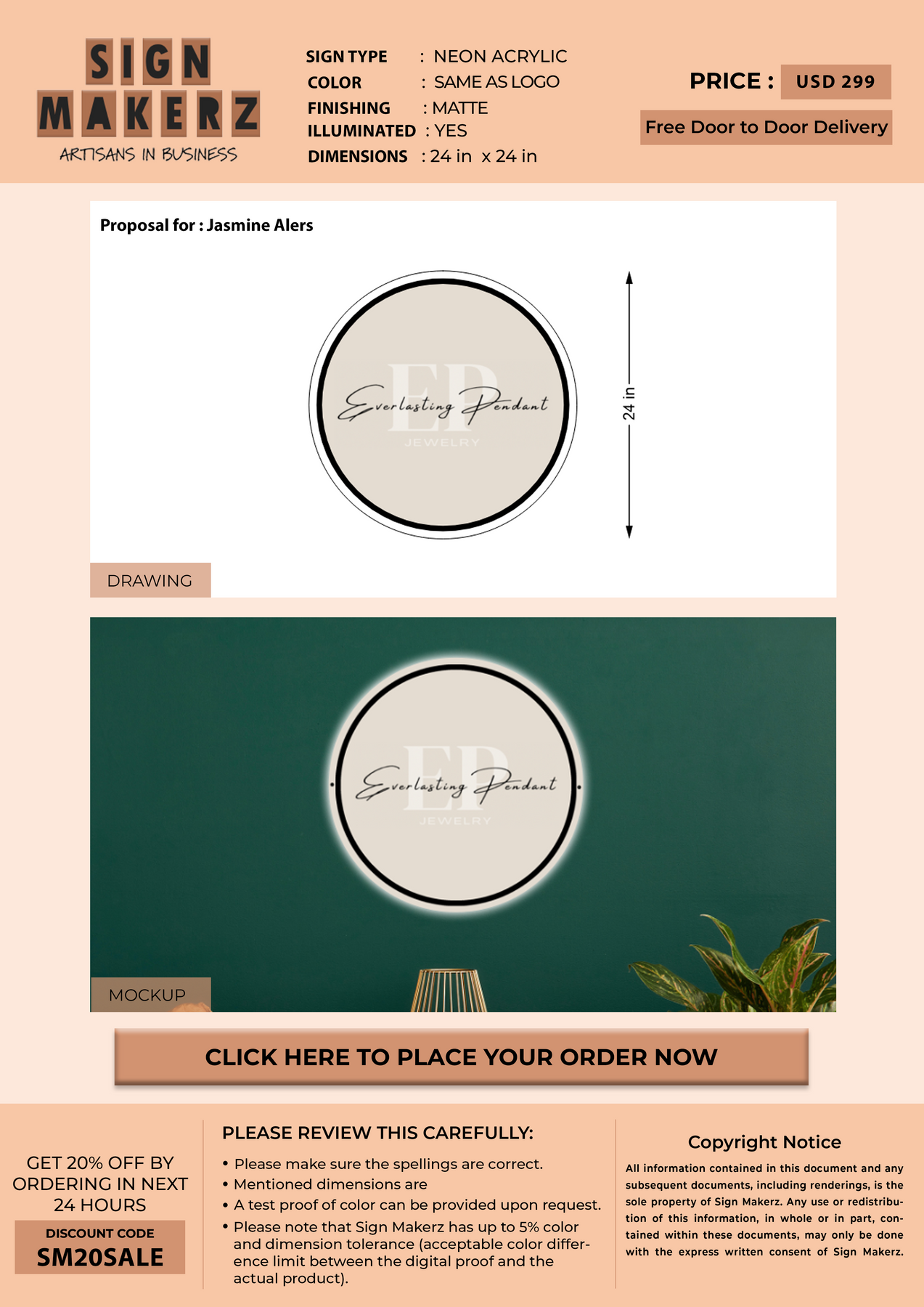 Neon Acrylic Sign for Jasmine Alers