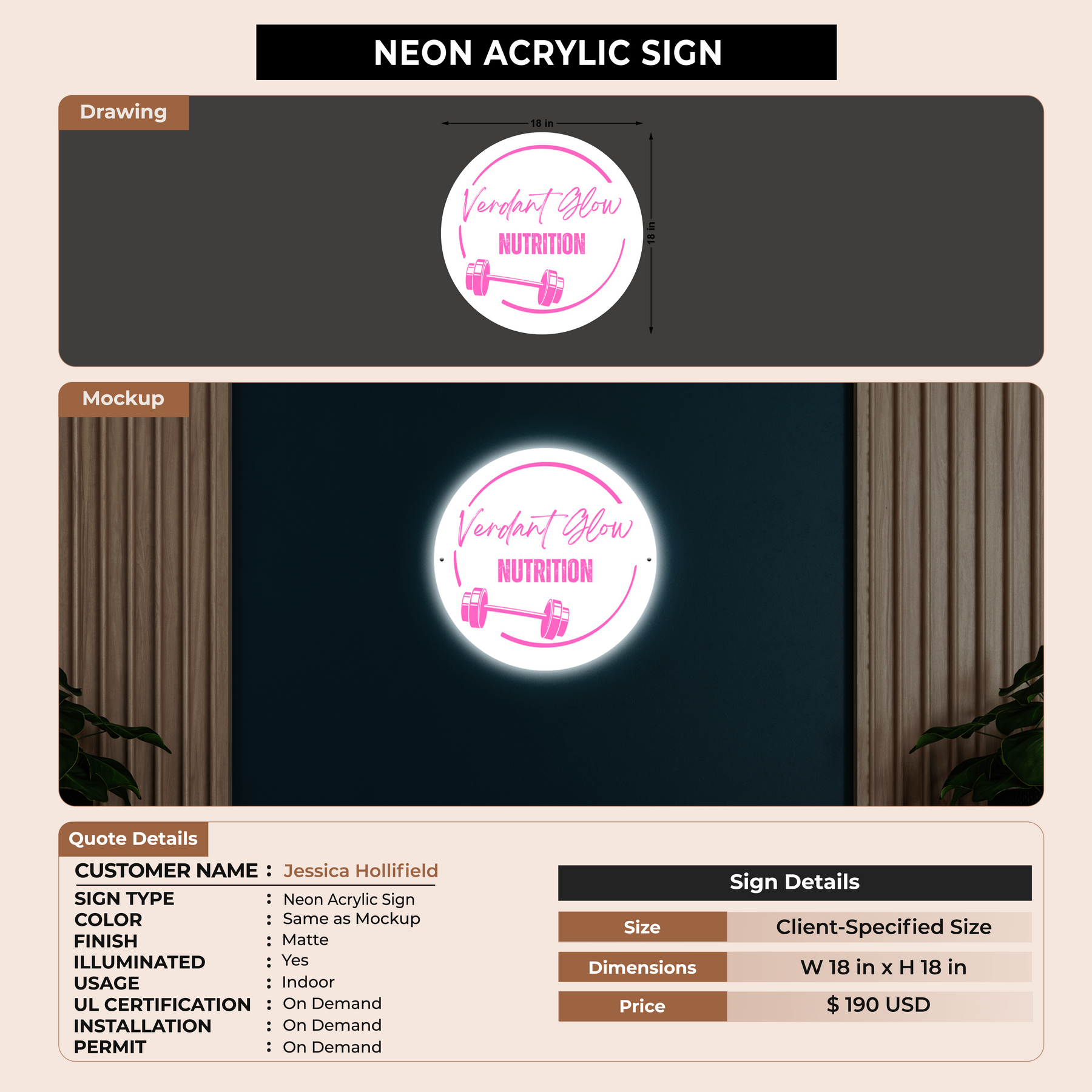 Neon Acrylic Sign For Jessica Hollifield