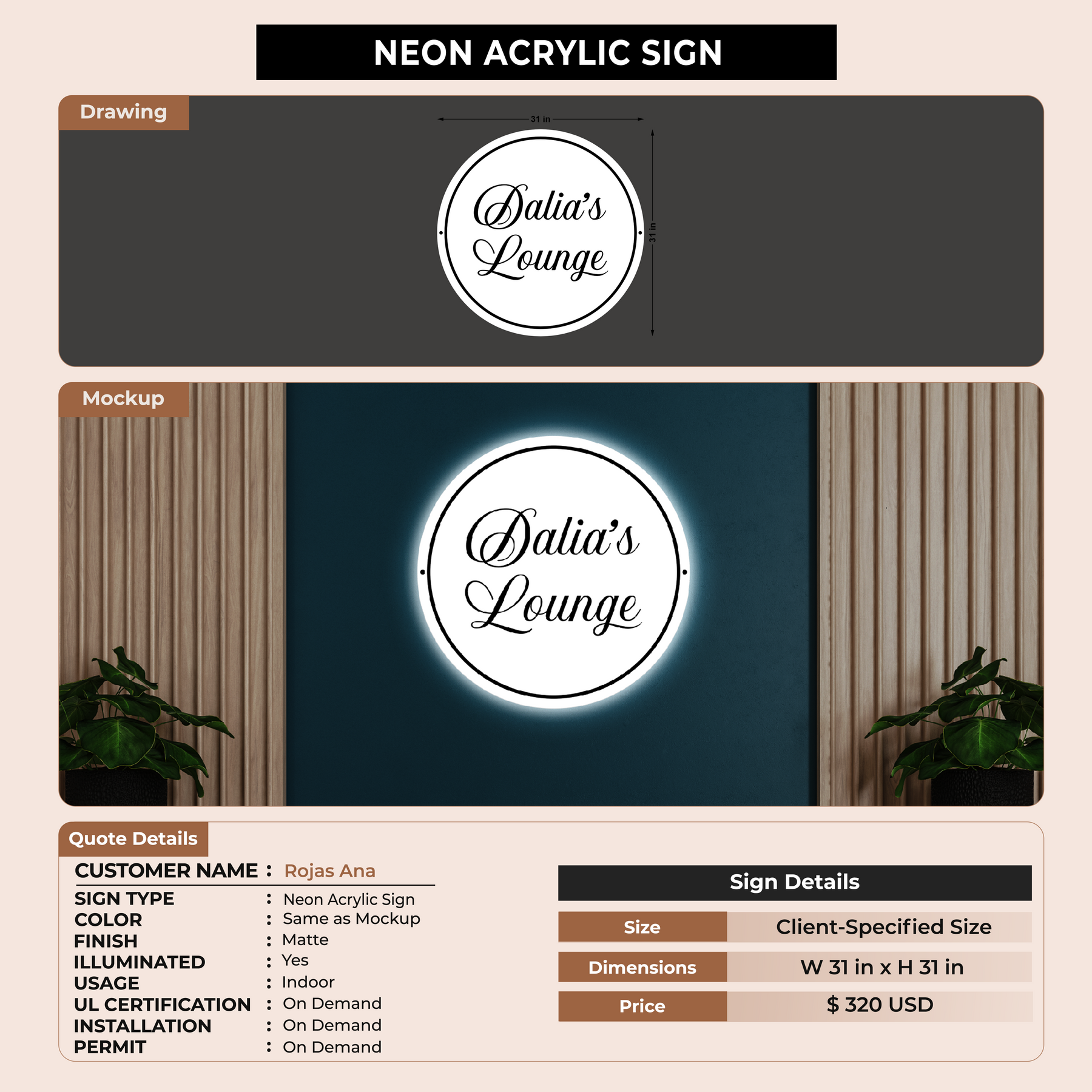 Neon Acrylic Sign For Rojas Ana